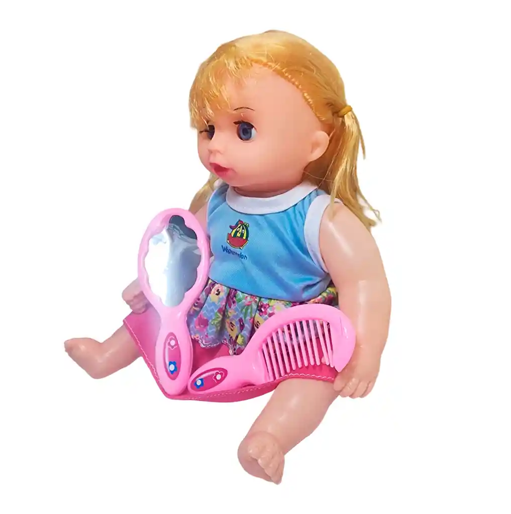 Tierna muñeca bebé con espejo y peine , perfecta para juegos de cuidado y crianza. Viste con un vestido a juego que resalta su aspecto adorable, para alimentar a la muñeca y fomentar el juego imaginativo. Viene empacada en una práctica mochila transparente con cierre, ideal para guardarla o llevarla a cualquier lugar de forma cómoda y segura. Ficha Técnica: Materiales : Plástico ABS Dimensiones: 18 cm x 13 cm x 5 cm Edad recomendada : + 3 años en adelante Material suave, cómodo, seguro, no tóxico Certificado de conformidad: SL-CS-210044 Referencia: JM-1250 8216A Términos de garantía: Para defectos de fábrica o retractos: Por favor revise el producto apenas lo reciba y antes de usarlo. No aplican ley de retracto o defectos de fábrica luego de usar el producto. Se manejan máximo 5 días para reportar defectos de fábrica (por ejemplo, producto funciona mal, piezas faltantes, rotas, etc). Para hacer efectiva la devolución el producto debe devolverse con el empaque original, el cual debe estar en buen estado, incluir todos los documentos y las partes completas y sin daños.