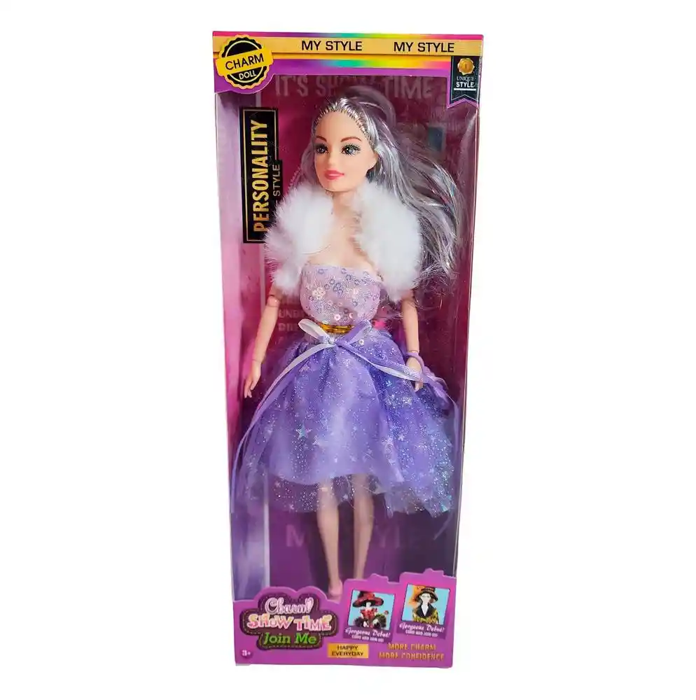 La muñeca Charm Show Time combina elegancia y fantasía en un solo look, luciendo un vestido brillante con detalles de tul y una capa de peluche que realza su estilo glamuroso. Con su cabello largo , es perfecta para inspirar juegos de moda, desfiles y momentos llenos de imaginación. Ficha Técnica: Materiales : Plástico ABS Dimensiones: 27 cm x 9 cm x 5 cm Edad recomendada : + 3 años en adelante Material suave, cómodo, seguro, no tóxico Certificado de conformidad: SL-CS-210044 Referencia: 628A18 617B4 Términos de garantía: Para defectos de fábrica o retractos: Por favor revise el producto apenas lo reciba y antes de usarlo. No aplican ley de retracto o defectos de fábrica luego de usar el producto. Se manejan máximo 5 días para reportar defectos de fábrica (por ejemplo, producto funciona mal, piezas faltantes, rotas, etc). Para hacer efectiva la devolución el producto debe devolverse con el empaque original, el cual debe estar en buen estado, incluir todos los documentos y las partes completas y sin daños.