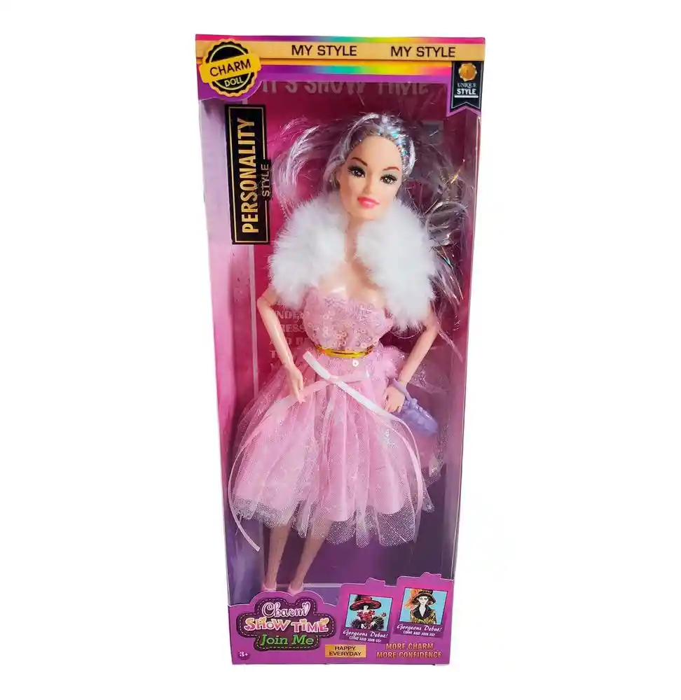 La muñeca Charm Show Time combina elegancia y fantasía en un solo look, luciendo un vestido brillante con detalles de tul y una capa de peluche que realza su estilo glamuroso. Con su cabello largo , es perfecta para inspirar juegos de moda, desfiles y momentos llenos de imaginación. Ficha Técnica: Materiales : Plástico ABS Dimensiones: 27 cm x 9 cm x 5 cm Edad recomendada : + 3 años en adelante Material suave, cómodo, seguro, no tóxico Certificado de conformidad: SL-CS-210044 Referencia: 628A18 617B4 Términos de garantía: Para defectos de fábrica o retractos: Por favor revise el producto apenas lo reciba y antes de usarlo. No aplican ley de retracto o defectos de fábrica luego de usar el producto. Se manejan máximo 5 días para reportar defectos de fábrica (por ejemplo, producto funciona mal, piezas faltantes, rotas, etc). Para hacer efectiva la devolución el producto debe devolverse con el empaque original, el cual debe estar en buen estado, incluir todos los documentos y las partes completas y sin daños.