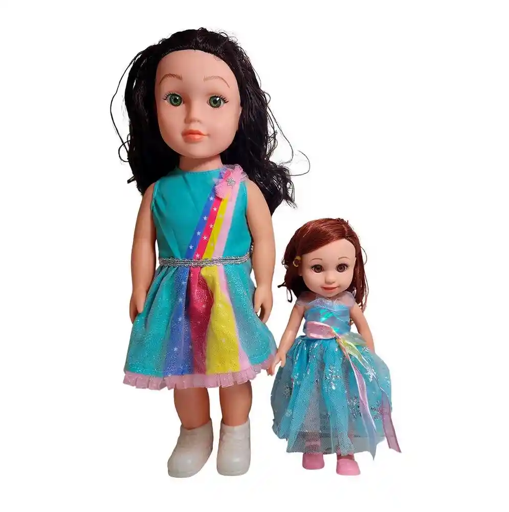 Despierta el doble de sonrisas e historias con este adorable set de muñecas "Amicbaly Girl Lovely Doll". Este paquete "Fashion Girl" es la compañía perfecta para un "Happy Every Day", ya que incluye dos amigas listas para la aventura: una muñeca más grande con cabello en coletas, que luce un vibrante vestido turquesa con un detalle de arcoíris brillante, y su inseparable compañera más pequeña, con cabello y un encantador vestido azul. Para completar la diversión, el set también trae una fabulosa diadema rosa para que tu pequeña pueda unirse al juego y al estilo. Es el regalo ideal para niñas mayores de 3 años, fomentando la amistad y horas de juego imaginativo. Ficha Técnica: Dimensiones : 43 cm x 15 cm Material: Plástico ABS Edad recomendada + 3 Años Referencia: 612B YG2403A1 Certificado de conformidad: CS-LCO-13233-2021S2/432 ** _Para defectos de fábrica o retractos: \_Por favor revise el producto apenas lo reciba y antes de usarlo. No aplican ley de retracto o defectos de fábrica luego de usar el producto. Se manejan máximo 5 días para reportar defectos de fábrica (por ejemplo, producto funciona mal, piezas faltantes, rotas, etc). Para hacer efectiva la devolución el producto debe devolverse con el empaque original, el cual debe estar en buen estado, incluir todos los documentos y las partes completas y sin daños.