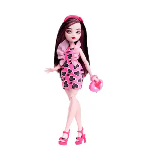 America Store te trae Muñeca Draculaura Monster High De Mattel HKY74 ¡La muñeca Draculaura acecha de manera sorprendente! Esta estudiante de Monster High hace que las vampiros marquen tendencia con su estilo que incluye un bolso de mano personalizado y accesorios espeluznantes y elegantes. Esta linda muñeca de juguete, está lista para posar con elegancia en cualquier momento y lugar con 11 articulaciones flexibles. Encuentra una gran variedad de juguetes para niñas como las fabulosas muñecas Monster High. ¡No esperes más y anímate a llevar la Muñeca Draculaura de Monster High! Recomendado para niñas mayores de 4 años.