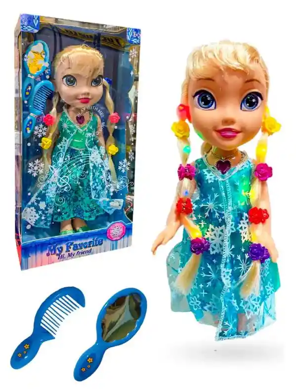 ¡La magia del reino de hielo llega a tus manos! Te presentamos la Muñeca Princesa Elsa Frozen 40 cm, un juguete interactivo lleno de luz, colores y detalles que enamoran. Su cabello largo, trenzado y peinable viene adornado con flores LED brillantes que crean una experiencia mágica para las niñas que aman el estilo, la fantasía y la creatividad. Vestido premium con detalles bordados en efecto copos de nieve, fabricado en tela de alta calidad que refleja la esencia elegante de Elsa. Luces LED integradas en todo el cabello que iluminan el juego y despiertan la imaginación. Incluye accesorios: peinilla y espejo, perfectos para crear nuevas trenzas, peinados y momentos creativos. Ideal para niñas que adoran Frozen, muñecas grandes, el juego simbólico y los juguetes interactivos. Perfecto para regalo de cumpleaños, Navidad, día del niño o colección. BENEFICIOS DEL PRODUCTO Estimula la creatividad y el juego imaginativo Desarrolla habilidades motoras finas (peinar, trenzar, decorar) Luces multicolor que encantan y mantienen la atención Diseño realista que inspira ternura y asombro Accesorios funcionales para mayor diversión Fabricada en material resistente y seguro para niñas Tamaño grande (40 cm) que mejora la experiencia de juego