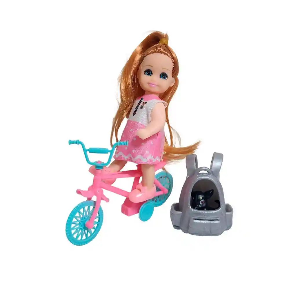 Es hora de la diversión con el set "Time Happy" , ¡perfecto para una "Happy Life" de aventuras! Esta encantadora muñeca, con su larga cabellera pelirroja y su tierno vestido escolar rosa, está lista para salir a explorar en su moderna bicicleta rosa y turquesa. Y no va sola: la acompaña su inseparable mascota, un adorable gatito negro que viaja cómodamente en su propia mochila transportadora plateada. Este completo set de "¡Juguemos juntos!" ("Let's play together!") es el regalo ideal para niñas mayores de 3 años, fomentando horas de juego imaginativo y paseos al aire libre. Ficha Técnica: Dimensiones : 11 cm x 5cm Material: Plástico ABS Edad recomendada + 3 Años Referencia: C1247 Certificado de conformidad: CS-LCO-13233-2021S2/432 ** _Para defectos de fábrica o retractos: \_Por favor revise el producto apenas lo reciba y antes de usarlo. No aplican ley de retracto o defectos de fábrica luego de usar el producto. Se manejan máximo 5 días para reportar defectos de fábrica (por ejemplo, producto funciona mal, piezas faltantes, rotas, etc). Para hacer efectiva la devolución el producto debe devolverse con el empaque original, el cual debe estar en buen estado, incluir todos los documentos y las partes completas y sin daños.