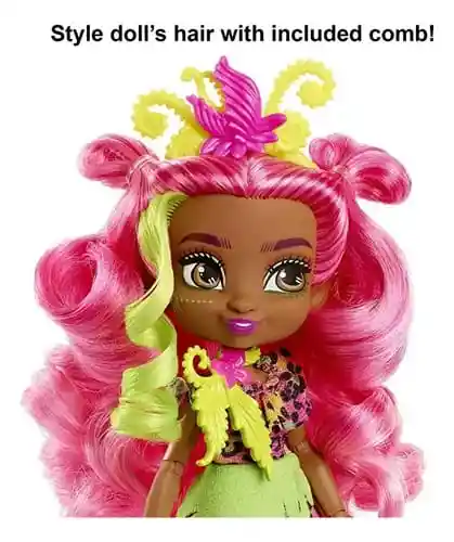 Descripción Cave Club Muñeca Fernessa Muñeca prehistórica de 10 Pulgadas Cabello Rosado Para niños de 4 años y más. El paquete incluye: - 1 Muñeca Fernessa - 1 Mascota Ptilly - 1 Taza con Flor - 1 Peineta para cabello de la muñeca ¡Obtén el regalo de cumpleaños perfecto! Producto 100% Nuevo, Sellado y Original. Conoce al Cave Club, un grupo prehistórico de amigos intrépidos que están muy por delante de su tiempo! Los niños pueden jugar infinitas aventuras con la muñeca Fernessa y su amigo dinosaurio Ptilly. Incluye un accesorio de peine y un impresionante bolso de flores para contar historias y divertirse con el estilo. Crea nuevos looks atrevidos para Fernessa con el accesorio de extensión de cabello neón brillante, ¡una exclusiva en línea! Transporta la imaginación al amanecer de los tiempos con muñecas y juguetes de Cave Club. Recomendado para niños de 4 años en adelante.