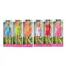 Muñeca articulada futbolista, cuenta con uniforme de tela y balón de material plástico, disponible en diferentes colores de uniforme. Empaque: 11cm x32cm x 5cm Aprox.