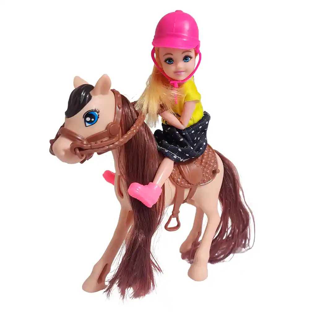 ¡Prepárate para cabalgar hacia un mundo de amistad y aventuras con este encantador set de equitación "Riding Playset"! Tu pequeña soñadora podrá crear las más hermosas historias junto a esta adorable muñeca jinete y su fiel y mágico corcel . Perfectamente equipada con su casco para un paseo seguro, la muñeca está lista para explorar campos imaginarios sobre su caballo, que luce una espectacular crin larga y sedosa, ideal para peinar y decorar una y otra vez. Este dúo inseparable es el regalo perfecto para inspirar horas de juego creativo, fomentando el amor por los animales y la creación de cuentos de hadas donde la amistad y la aventura no tienen fin. Ficha Técnica: Material: Plástico ABS Dimensiones : 12 cm x 4 cm x 4 cm Apto para bebes + 3 Años Certificado de conformidad: E5-0359-2021 Referencia: JM1288 ** _Para defectos de fábrica o retractos: \_Por favor revise el producto apenas lo reciba y antes de usarlo. No aplican ley de retracto o defectos de fábrica luego de usar el producto. Se manejan máximo 5 días para reportar defectos de fábrica (por ejemplo, producto funciona mal, piezas faltantes, rotas, etc). Para hacer efectiva la devolución el producto debe devolverse con el empaque original, el cual debe estar en buen estado, incluir todos los documentos y las partes completas y sin daños.