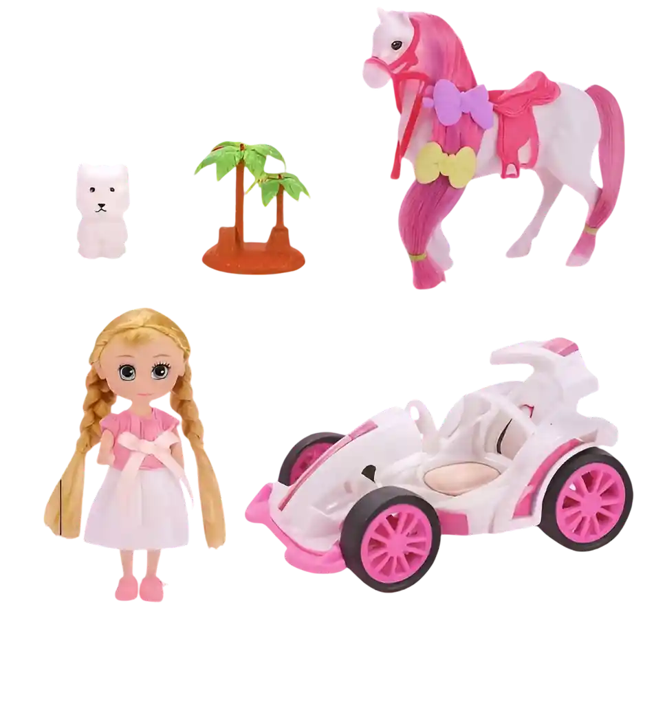 Vive aventuras llenas de diversión con este encantador set de muñeca con trenzas, su elegante caballo de crin rosada y su adorable perrito. Incluye también un moderno auto de paseo y accesorios para recrear momentos mágicos al aire libre. Ideal para estimular la imaginación, el juego creativo y la empatía en los niños. ¡Un regalo perfecto para quienes aman los animales y la diversión sobre ruedas! Ficha Técnica: Dimensiones del empaque: 39 cm x 22 cm x 14 cm Material : ABS Edad recomendada + 3 Años Certificado de conformidad: SL-CS-210044 Registro sanitario: NSOC96429-19CO Referencia: C4612 ** _Para defectos de fábrica o retractos: \_Por favor revise el producto apenas lo reciba y antes de usarlo. No aplican ley de retracto o defectos de fábrica luego de usar el producto. Se manejan máximo 5 días para reportar defectos de fábrica (por ejemplo, producto funciona mal, piezas faltantes, rotas, etc). Para hacer efectiva la devolución el producto debe devolverse con el empaque original, el cual debe estar en buen estado, incluir todos los documentos y las partes completas y sin daños.