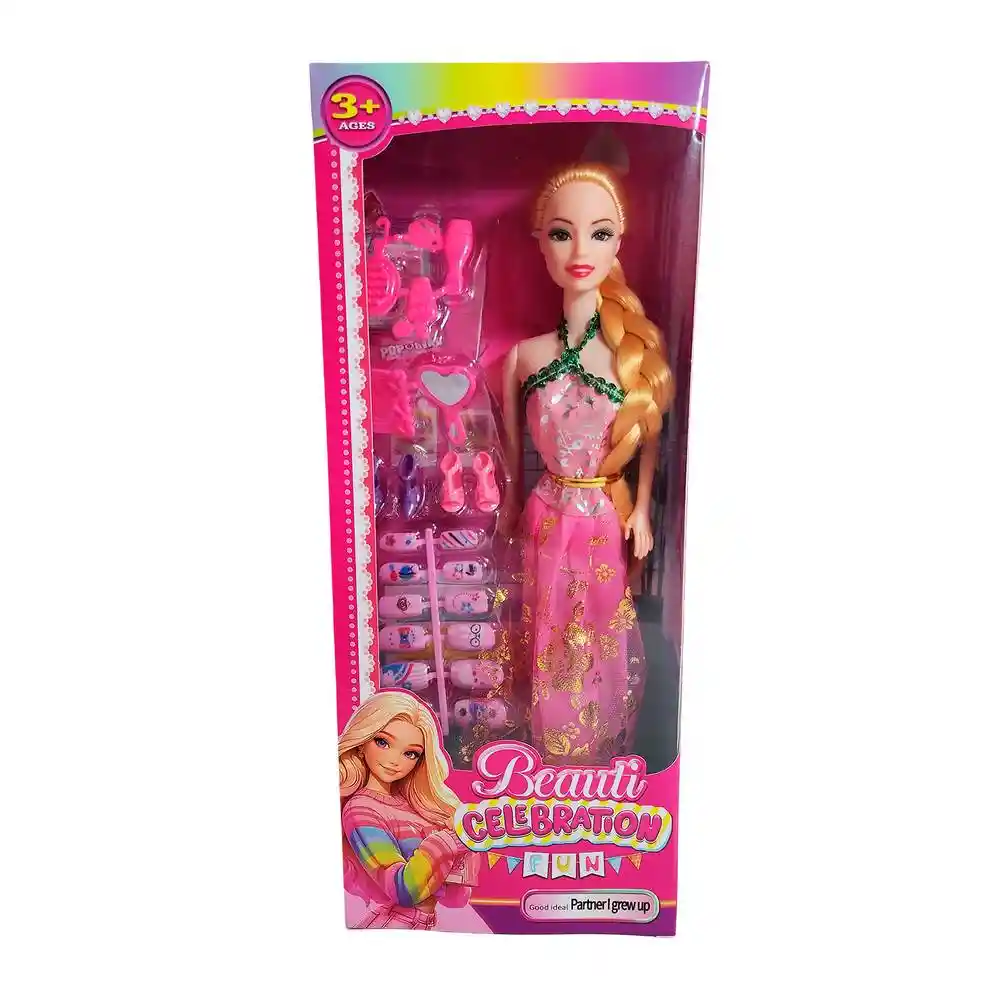 La muñeca Beauti Celebration Fun es ideal para las niñas que aman la moda y la creatividad. Con un diseño elegante y una gran variedad de accesorios, permite crear múltiples estilos y combinaciones para cada ocasión. Incluye zapatos, peines, joyas y complementos que estimulan la imaginación y el juego de roles. Fabricada con materiales resistentes y acabados de calidad, es perfecta como regalo para quienes disfrutan explorar el mundo del estilo y la belleza. Recomendado para mayores de 3 años. Ficha Técnica: Dimensiones : 29 cm x 5 cm Material: Plástico ABS Edad recomendada: + 3 años Referencia: 628A19 620A6 Certificado de conformidad: E5-0359-2021 ** _Para defectos de fábrica o retractos: \_Por favor revise el producto apenas lo reciba y antes de usarlo. No aplican ley de retracto o defectos de fábrica luego de usar el producto. Se manejan máximo 5 días para reportar defectos de fábrica (por ejemplo, producto funciona mal, piezas faltantes, rotas, etc). Para hacer efectiva la devolución el producto debe devolverse con el empaque original, el cual debe estar en buen estado, incluir todos los documentos y las partes completas y sin daños.