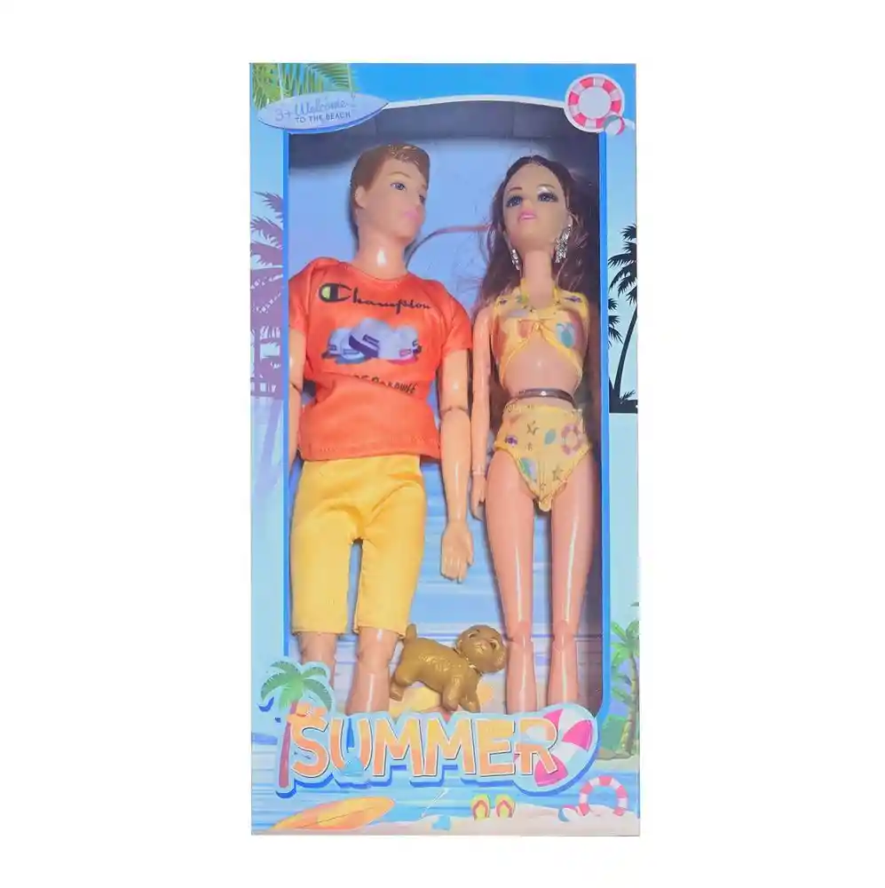 Este juguete incluye una muñeca y un muñeco vestidos con ropa de playa de estilo hawaiano, perfectos para disfrutar de aventuras bajo el sol. Acompañados por su adorable mascota, invitan a las niñas a sumergirse en juegos llenos de diversión, creando historias imaginativas de vacaciones, exploración y amistad en un ambiente tropical, desarrollando su creatividad y brindando horas de entretenimiento. /// Nota: Algunos colores del vestido y el cabello de la muñeca pueden variar ligeramente /// Ficha Técnica: Dimensiones de la muñeca: 29 cm x 9 cm Dimensiones del empaque: 32 cm x 16 cm x 5 cm Material: Plástico ABS no toxico Edad recomendada + 3 Años Certificado de conformidad: CS-LCO-13233-2021S2/432 Referencia: 612B ** _Para defectos de fábrica o retractos: \_Por favor revise el producto apenas lo reciba y antes de usarlo. No aplican ley de retracto o defectos de fábrica luego de usar el producto. Se manejan máximo 5 días para reportar defectos de fábrica (por ejemplo, producto funciona mal, piezas faltantes, rotas, etc). Para hacer efectiva la devolución el producto debe devolverse con el empaque original, el cual debe estar en buen estado, incluir todos los documentos y las partes completas y sin daños.