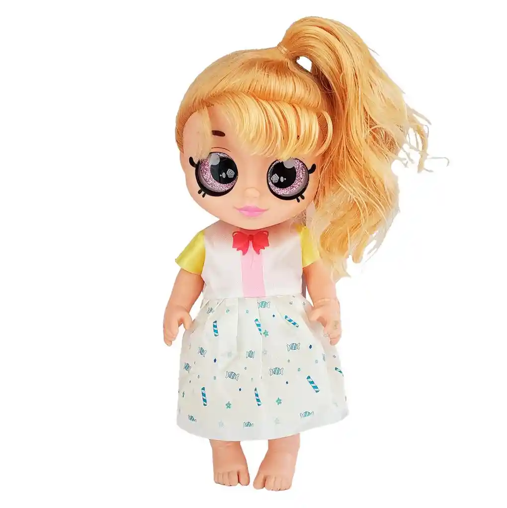 Estas encantadoras y divertidas muñecas de ojos expresivos vienen vestidas con atuendos en delicados y tiernos colores, ideales para estimular la imaginación de las niñas mientras juegan a cuidarlas y llevarlas a todas partes. Son perfectas como su primer bebé de juguete, fomentando el desarrollo de la coordinación mano-ojo, la cognición y la capacidad de reconocer sonidos, impulsando su audición de forma activa a través del juego. Ficha Técnica: Material : Plástico ABS , No toxico - Tela Edad Apto + 3 años Dimensiones Muñeca (Ancho x Alto x Prof ) : 13 cm x 26 x 8 cm Certificado de conformidad: E5-0359-2021 Referencia: C1188 ** _Para defectos de fábrica o retractos: \_Por favor revise el producto apenas lo reciba y antes de usarlo. No aplican ley de retracto o defectos de fábrica luego de usar el producto. Se manejan máximo 5 días para reportar defectos de fábrica (por ejemplo, producto funciona mal, piezas faltantes, rotas, etc). Para hacer efectiva la devolución el producto debe devolverse con el empaque original, el cual debe estar en buen estado, incluir todos los documentos y las partes completas y sin daños.