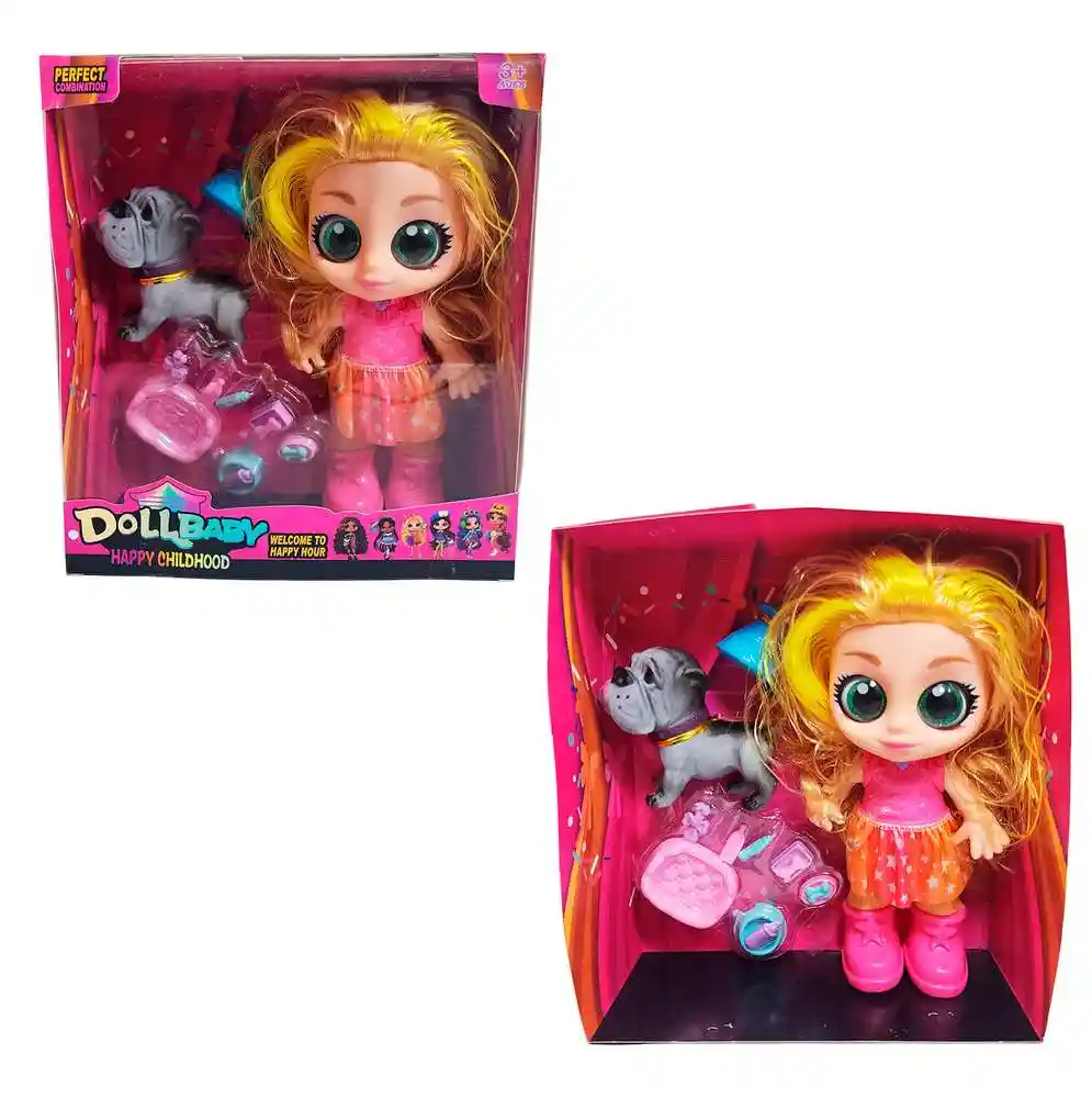 La muñeca Doll Baby Happy Childhood es perfecta para acompañar las aventuras de los más pequeños. Su diseño tierno con grandes ojos expresivos y su divertido conjunto de accesorios permiten vivir momentos llenos de imaginación. Incluye un adorable perrito y utensilios de cuidado como biberón, cepillo y plato, ideales para fomentar el juego de roles y la responsabilidad. Fabricada con materiales resistentes y colores vibrantes, esta muñeca es ideal para niñas y niños mayores de 3 años. Ficha Técnica: Dimensiones : 23 cm x 10 cm Material: Plástico ABS Edad recomendada: + 18 meses Referencia: JM-1317 307B Certificado de conformidad: E5-0359-2021 ** _Para defectos de fábrica o retractos: \_Por favor revise el producto apenas lo reciba y antes de usarlo. No aplican ley de retracto o defectos de fábrica luego de usar el producto. Se manejan máximo 5 días para reportar defectos de fábrica (por ejemplo, producto funciona mal, piezas faltantes, rotas, etc). Para hacer efectiva la devolución el producto debe devolverse con el empaque original, el cual debe estar en buen estado, incluir todos los documentos y las partes completas y sin daños.