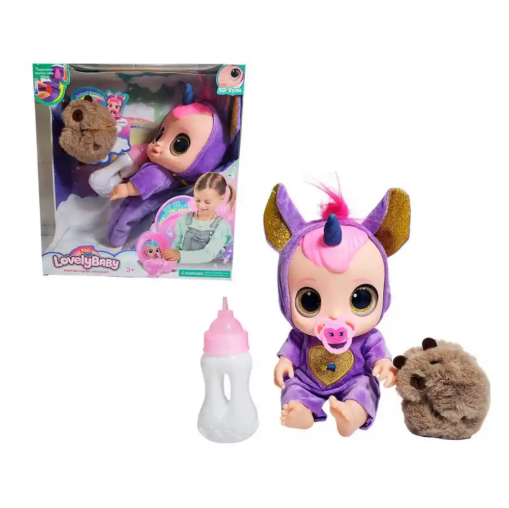 Experimenta un mundo de magia y cuidados con esta adorable muñeca "Fad Lovely Baby", la compañera interactiva perfecta para tu pequeña. Esta encantadora bebé, con expresivos "3D Eyes" y un fantástico look de unicornio, luce un mameluco y una capucha a juego con cuerno dorado y cabello . El set se completa con su tetero, un tierno chupón rosa y una adorable mascota de peluche marrón y esponjosa, lista para unirse a las aventuras y brindar horas de juego imaginativo. Ficha Técnica: Dimensiones : 19 cm x 10 cm Material: Plástico ABS Edad recomendada + 3 Años Referencia: 2071-1 XY059B Certificado de conformidad: CS-LCO-13233-2021S2/432 ** _Para defectos de fábrica o retractos: \_Por favor revise el producto apenas lo reciba y antes de usarlo. No aplican ley de retracto o defectos de fábrica luego de usar el producto. Se manejan máximo 5 días para reportar defectos de fábrica (por ejemplo, producto funciona mal, piezas faltantes, rotas, etc). Para hacer efectiva la devolución el producto debe devolverse con el empaque original, el cual debe estar en buen estado, incluir todos los documentos y las partes completas y sin daños.