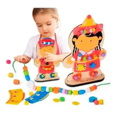 Esta muñeca de enhebrar es ideal para la coordinación mano-ojo, y para la motricidad fina, desarrollando habilidades necesarias para la vida.