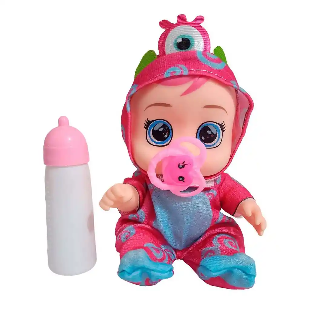 ¡Descubre un mundo de ternura y juego interactivo con esta adorable bebé en su divertido pijama de monstruo! Esta dulce muñeca llora lágrimas de verdad: simplemente dale de beber con su tetero, aprieta suavemente su cabecita y observa cómo sus ojitos se llenan de lágrimas. Pero la magia del cuidado está en tus manos, ya que podrás calmarla al instante poniéndole su chupo. Es la compañera perfecta para fomentar la empatía y el juego de roles, combinando la fantasía de un disfraz con la dulce responsabilidad de cuidar a un bebé, garantizando horas de diversión y momentos afectuosos. Ficha Técnica: Dimensiones : 15 cm x 10 cm x 8 cm Material: Plastico ABS Edad recomendada: + 3 años Certificado de conformidad: E5-0359-2021 Referencia: JM1358 ** _Para defectos de fábrica o retractos: \_Por favor revise el producto apenas lo reciba y antes de usarlo. No aplican ley de retracto o defectos de fábrica luego de usar el producto. Se manejan máximo 5 días para reportar defectos de fábrica (por ejemplo, producto funciona mal, piezas faltantes, rotas, etc). Para hacer efectiva la devolución el producto debe devolverse con el empaque original, el cual debe estar en buen estado, incluir todos los documentos y las partes completas y sin daños.