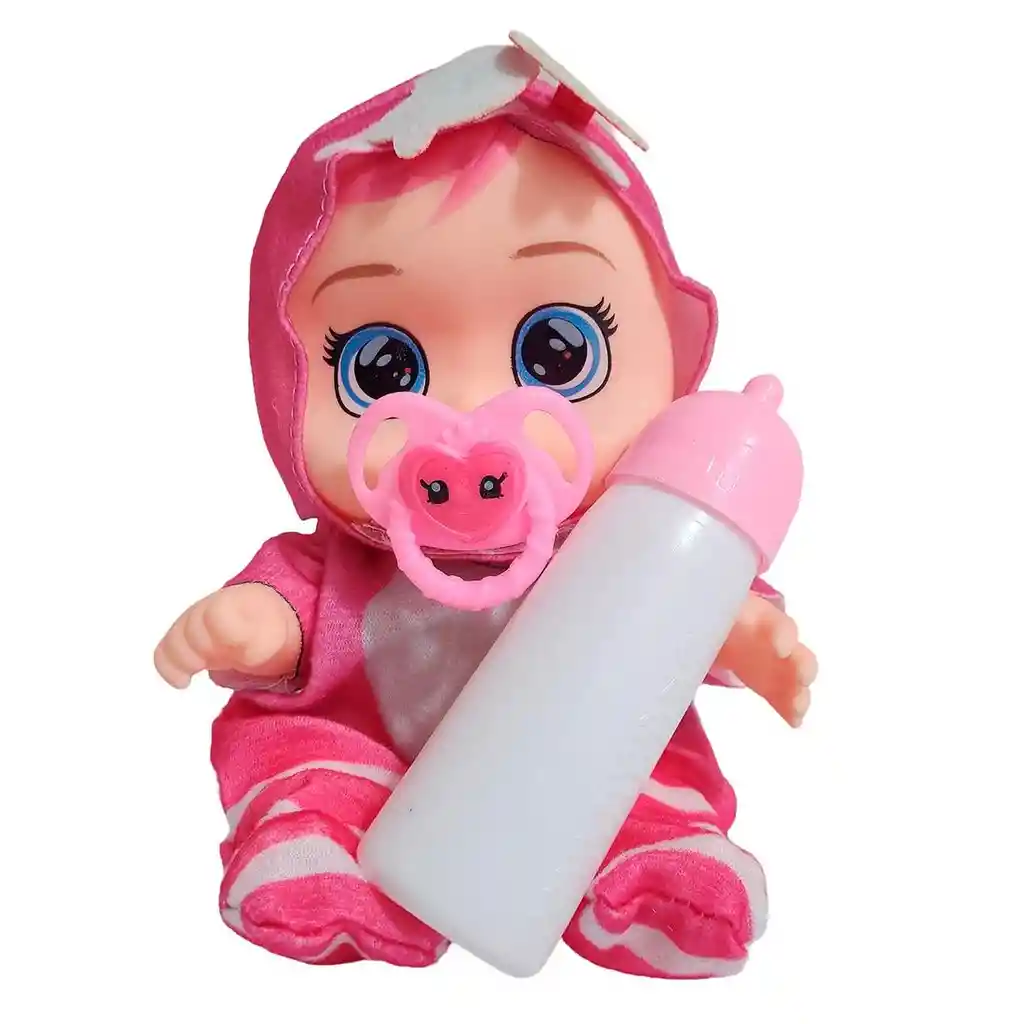 ¡Descubre un mundo de ternura y juego interactivo con esta adorable bebé en su divertido pijama de monstruo! Esta dulce muñeca llora lágrimas de verdad: simplemente dale de beber con su tetero, aprieta suavemente su cabecita y observa cómo sus ojitos se llenan de lágrimas. Pero la magia del cuidado está en tus manos, ya que podrás calmarla al instante poniéndole su chupo. Es la compañera perfecta para fomentar la empatía y el juego de roles, combinando la fantasía de un disfraz con la dulce responsabilidad de cuidar a un bebé, garantizando horas de diversión y momentos afectuosos. Ficha Técnica: Dimensiones : 15 cm x 10 cm x 8 cm Material: Plastico ABS Edad recomendada: + 3 años Certificado de conformidad: E5-0359-2021 Referencia: JM1358 ** _Para defectos de fábrica o retractos: \_Por favor revise el producto apenas lo reciba y antes de usarlo. No aplican ley de retracto o defectos de fábrica luego de usar el producto. Se manejan máximo 5 días para reportar defectos de fábrica (por ejemplo, producto funciona mal, piezas faltantes, rotas, etc). Para hacer efectiva la devolución el producto debe devolverse con el empaque original, el cual debe estar en buen estado, incluir todos los documentos y las partes completas y sin daños.