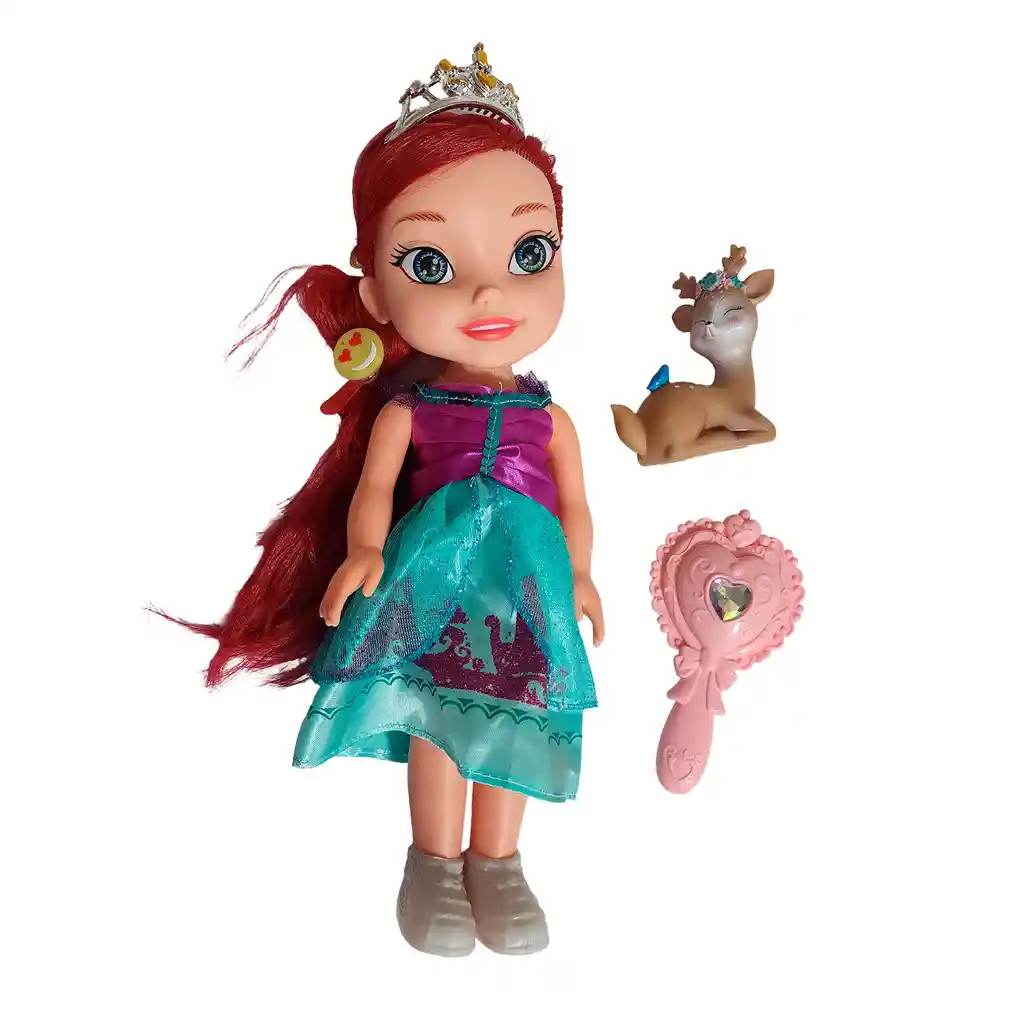¡Abre las puertas a un mundo de fantasía y vive tu propio cuento de hadas con esta encantadora Princesa del Bosque! Inspirada en los personajes más queridos, esta dulce muñeca está lista para reinar con su brillante tiara y su icónico vestido de gala que evoca historias mágicas. Con su largo y sedoso cabello , perfecto para peinar, no está sola en sus aventuras; la acompaña su inseparable y tierno amigo, un adorable cervatillo del bosque. Ya sea preparándose para el baile real con su elegante espejo o compartiendo secretos con su amigo animal, esta princesa es la protagonista ideal para despertar la imaginación y permitir que cada pequeña soñadora se convierta en la heroína de su propio reino encantado. Ficha Técnica: Material: Plástico ABS Dimensiones : 35 cm x 12 cm x 6 cm Apto para bebes + 3 Años Certificado de conformidad: E5-0359-2021 Referencia: JM1359 ** _Para defectos de fábrica o retractos: \_Por favor revise el producto apenas lo reciba y antes de usarlo. No aplican ley de retracto o defectos de fábrica luego de usar el producto. Se manejan máximo 5 días para reportar defectos de fábrica (por ejemplo, producto funciona mal, piezas faltantes, rotas, etc). Para hacer efectiva la devolución el producto debe devolverse con el empaque original, el cual debe estar en buen estado, incluir todos los documentos y las partes completas y sin daños.