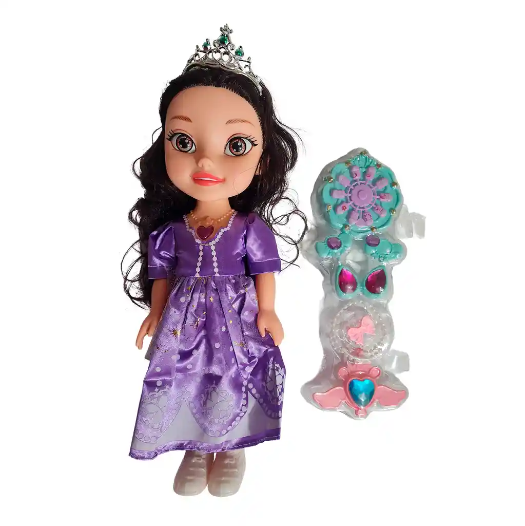 ¡Prepárate para reinar en un mundo de fantasía con esta espectacular princesa musical! Luciendo un deslumbrante vestido de gala color púrpura y su elegante corona, esta muñeca no es solo una belleza real, sino que también está llena de magia interactiva. Simplemente presiona el dije en su pecho para escuchar encantadoras melodías que darán vida a cualquier cuento de hadas y harán de cada momento de juego una escena mágica. Además, para una experiencia de realeza completa, el set incluye un fantástico juego de accesorios de fantasía con pendientes y una varita, perfectos para que las pequeñas se adornen y compartan el glamour de su nueva amiga. Es el regalo soñado que lo tiene todo: moda, música y accesorios para inspirar horas de juego imaginativo y convertir cualquier día en un gran baile real. Ficha Técnica: Material: Plástico ABS Dimensiones : 32 cm x 16 cm x 5 cm Apto para bebes + 3 Años Certificado de conformidad: E5-0359-2021 Referencia: JM1318 ** _Para defectos de fábrica o retractos: \_Por favor revise el producto apenas lo reciba y antes de usarlo. No aplican ley de retracto o defectos de fábrica luego de usar el producto. Se manejan máximo 5 días para reportar defectos de fábrica (por ejemplo, producto funciona mal, piezas faltantes, rotas, etc). Para hacer efectiva la devolución el producto debe devolverse con el empaque original, el cual debe estar en buen estado, incluir todos los documentos y las partes completas y sin daños.