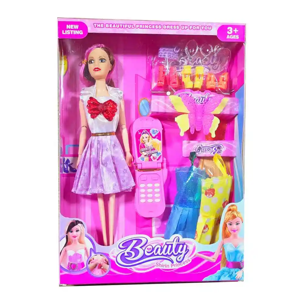 Descubre la muñeca perfecta para horas de diversión, que viene acompañada de una colección de elegantes vestidos, varios pares de zapatos a juego, y un celular de juguete. Ideal para crear historias únicas y desarrollar la creatividad, esta muñeca ofrece infinitas posibilidades de juego con sus variados accesorios que permiten cambiar su estilo y vivir nuevas aventuras cada día. Ficha Técnica: Dimensiones de la muñeca: 29 cm x 9 cm Dimensiones del empaque: 32 cm x 23 cm x 4 cm Material: Plastico ABS no toxico Edad recomendada + 3 Años Certificado de conformidad: CS-LCO-13233-2021S2/432 Referencia: 619A15 ** _Para defectos de fábrica o retractos: \_Por favor revise el producto apenas lo reciba y antes de usarlo. No aplican ley de retracto o defectos de fábrica luego de usar el producto. Se manejan máximo 5 días para reportar defectos de fábrica (por ejemplo, producto funciona mal, piezas faltantes, rotas, etc). Para hacer efectiva la devolución el producto debe devolverse con el empaque original, el cual debe estar en buen estado, incluir todos los documentos y las partes completas y sin daños.