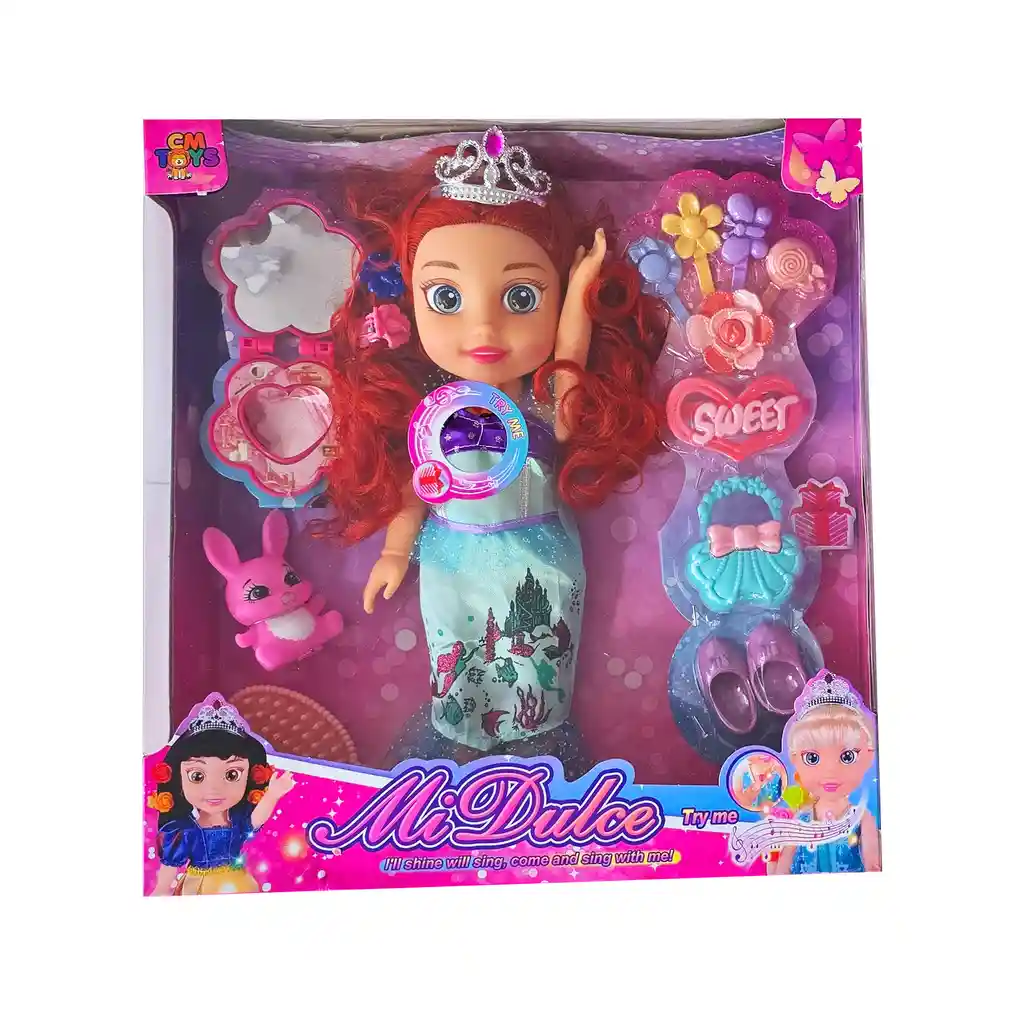 Esta encantadora muñeca princesa de cuentos de hadas, vestida con un hermoso vestido multicolor, es el juguete perfecto para que las niñas se diviertan mientras estimulan su imaginación. Con sus colores vibrantes y su diseño atractivo, esta muñeca invita a las pequeñas a crear historias y aventuras llenas de creatividad. Además, viene acompañada de un adorable conejo, un peine, un espejo y diversos accesorios, como ganchos, un bolso y un par de zapatos de juguete, lo que la convierte en una compañera ideal para el juego. Ofreciendo horas de diversión y aprendizaje en cada interacción, ¡este regalo seguramente encantará a cualquier niña y la inspirará a explorar un mundo de fantasía! Ficha Técnica: Material : Plástico ABS Dimensiones del producto : 29 cm x 10 cm Dimensiones del empaque: 29 cm x 27 cm x 7 cm Edad apta : + 3 años Certificado de conformidad: E5-0359-2021 Referencia: C1186 ** _Para defectos de fábrica o retractos: \_Por favor revise el producto apenas lo reciba y antes de usarlo. No aplican ley de retracto o defectos de fábrica luego de usar el producto. Se manejan máximo 5 días para reportar defectos de fábrica (por ejemplo, producto funciona mal, piezas faltantes, rotas, etc). Para hacer efectiva la devolución el producto debe devolverse con el empaque original, el cual debe estar en buen estado, incluir todos los documentos y las partes completas y sin daños.