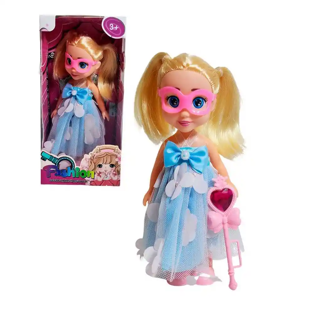 Despierta la magia y la moda con esta encantadora muñeca "Fashion" de la colección "Let's live together. Happy together." Esta adorable muñeca está lista para cualquier baile de máscaras o aventura mágica con su peinado de dos coquetos moños rubios y un llamativo antifaz rosa. Su atuendo es un sueño, luciendo un elegante vestido de tul y delicados pétalos de flores adornando la falda. Para completar su look, viene armada con su propio cetro mágico rosa, coronado por una joya en forma de corazón. Es el regalo perfecto para niñas mayores de 3 años, inspirando horas de juego imaginativo y diversión con estilo. Ficha Técnica: Dimensiones : 20 cm x 7 cm Material: Plástico ABS Edad recomendada + 3 Años Referencia: 620A11 YG2301A-1 Certificado de conformidad: CS-LCO-13233-2021S2/432 ** _Para defectos de fábrica o retractos: \_Por favor revise el producto apenas lo reciba y antes de usarlo. No aplican ley de retracto o defectos de fábrica luego de usar el producto. Se manejan máximo 5 días para reportar defectos de fábrica (por ejemplo, producto funciona mal, piezas faltantes, rotas, etc). Para hacer efectiva la devolución el producto debe devolverse con el empaque original, el cual debe estar en buen estado, incluir todos los documentos y las partes completas y sin daños.