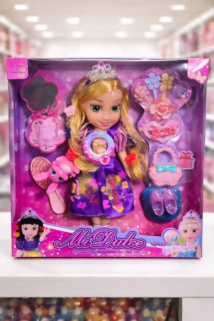 Esta encantadora muñeca princesa de cuentos de hadas, vestida con un hermoso vestido multicolor, es el juguete perfecto para que las niñas se diviertan mientras estimulan su imaginación. Con sus colores vibrantes y su diseño atractivo, esta muñeca invita a las pequeñas a crear historias y aventuras llenas de creatividad. Además, viene acompañada de un adorable conejo, un peine, un espejo y diversos accesorios, como ganchos, un bolso y un par de zapatos de juguete, lo que la convierte en una compañera ideal para el juego. Ofreciendo horas de diversión y aprendizaje en cada interacción, ¡este regalo seguramente encantará a cualquier niña y la inspirará a explorar un mundo de fantasía!