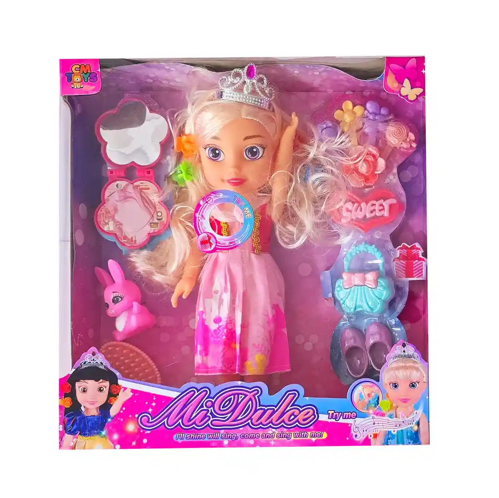 Esta encantadora muñeca princesa de cuentos de hadas, vestida con un hermoso vestido multicolor, es el juguete perfecto para que las niñas se diviertan mientras estimulan su imaginación. Con sus colores vibrantes y su diseño atractivo, esta muñeca invita a las pequeñas a crear historias y aventuras llenas de creatividad. Además, viene acompañada de un adorable conejo, un peine, un espejo y diversos accesorios, como ganchos, un bolso y un par de zapatos de juguete, lo que la convierte en una compañera ideal para el juego. Ofreciendo horas de diversión y aprendizaje en cada interacción, ¡este regalo seguramente encantará a cualquier niña y la inspirará a explorar un mundo de fantasía! Ficha Técnica: Material : Plástico ABS Dimensiones del producto : 29 cm x 10 cm Dimensiones del empaque: 29 cm x 27 cm x 7 cm Edad apta : + 3 años Certificado de conformidad: E5-0359-2021 Referencia: C1186 ** _Para defectos de fábrica o retractos: \_Por favor revise el producto apenas lo reciba y antes de usarlo. No aplican ley de retracto o defectos de fábrica luego de usar el producto. Se manejan máximo 5 días para reportar defectos de fábrica (por ejemplo, producto funciona mal, piezas faltantes, rotas, etc). Para hacer efectiva la devolución el producto debe devolverse con el empaque original, el cual debe estar en buen estado, incluir todos los documentos y las partes completas y sin daños.