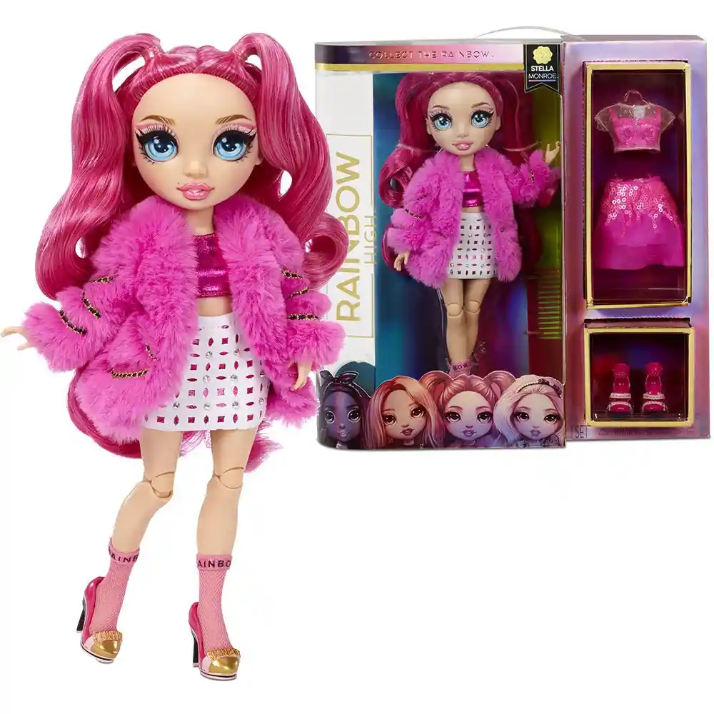 Muñeca Rainbow High Stella Monroe Serie 1 Original, autentica de MGA. La muñeca mide 28 cm. Incluye - Muñeca de Moda 2 Conjuntos Completos 2 Pares de Zapatos y Accesorios Peine Collar 2 Pinzas Para el Pelo 2 Perchas y un Soporte Para Muñecas. ADVERTENCIA: Este producto puede contener piezas pequeñas, que representen riesgo de asfixia. Se sugiere supervisión de un adulto. Los productos de ATHENEASTOREMED son 100% originales y adquiridos directamente a las marcas.