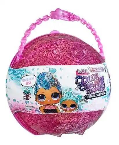 ¡Presentamos la LOL Surprise Glitter Color Change Pearl Surprise! Cada perla brillante viene con una muñeca coleccionable LOL exclusiva y una hermana Lil para coleccionar. Desenvuelva el juego y descubra 6 sorpresas relucientes para destapar, incluida una efervescencia burbujeante. Suelta la efervescencia en un recipiente grande con agua y descubre que aparece una revelación única. ¡Cada par de hermanas también viene con una sorpresa de cambio de color brillante! Alimenta a la muñeca con agua de su botella, coloca el tapón de burbujas y sumerge a tu muñeca y a Lil Sis en agua para ver una forma completamente nueva de cambiar de color. El estuche brillante también puede convertirse en un bolso, un estuche de almacenamiento para tus muñecas y un juego. Hay 2 colores, cada uno con 2 muñecas exclusivas, con LOL Surprise Glitter Color Change Pearl Surprise para coleccionar. Cada una de venta por separado.