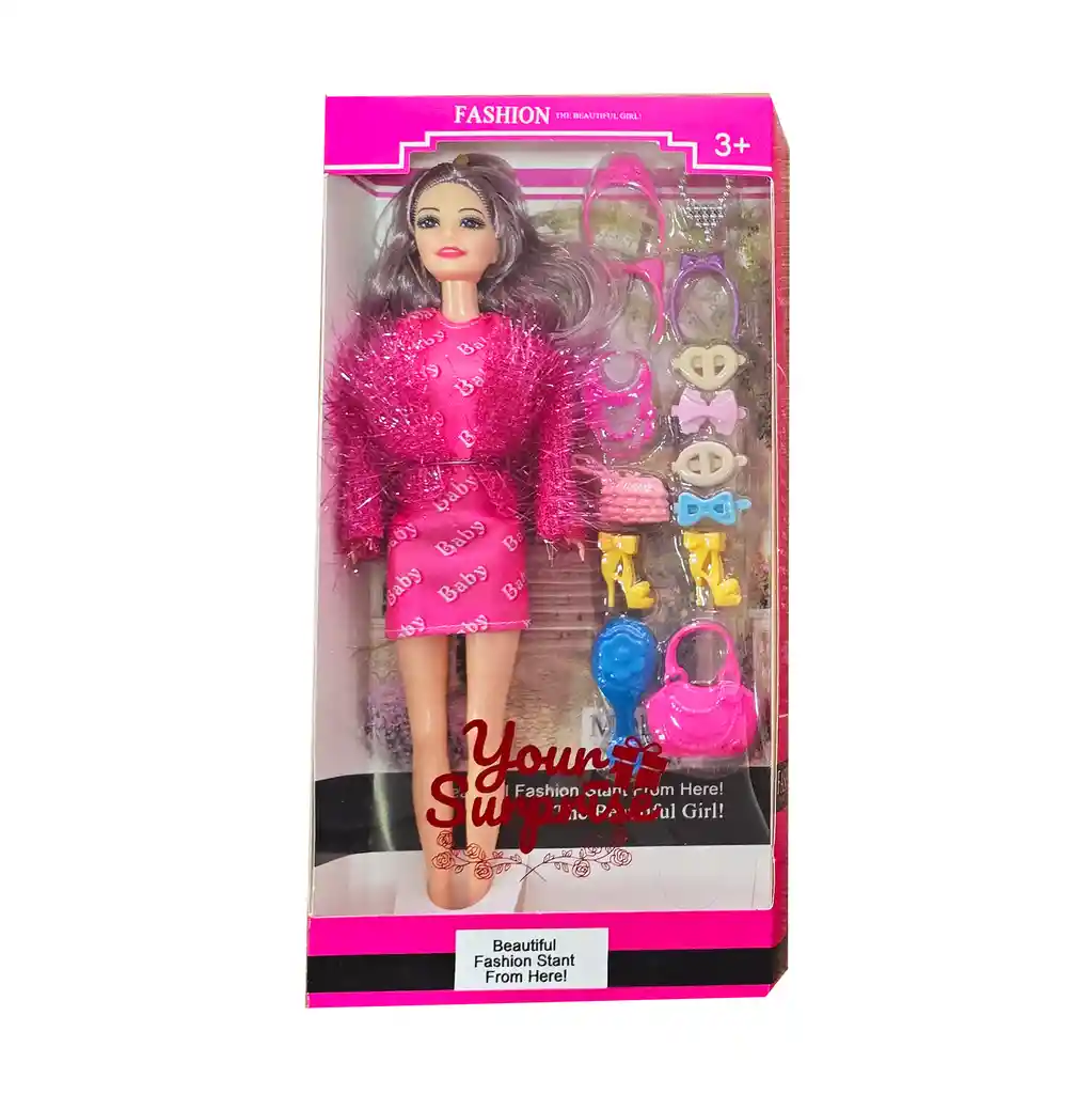 Esta muñeca luce un abrigo elegante y viene acompañada de varios accesorios de moda, ofreciendo a las niñas la oportunidad de explorar su creatividad y crear looks únicos mientras se divierten imaginando diferentes escenarios llenos de estilo. Ficha Técnica: Dimensiones Muñeca: 29 cm x 9 cm Dimensiones del empaque : 32 cm x 12 cm x 4 cm Material: Plástico ABS Edad recomendada: + 3 años Referencia: 2338B4 Certificado de conformidad: CS-LCO-13233-2021S2/432 ** _Para defectos de fábrica o retractos: \_Por favor revise el producto apenas lo reciba y antes de usarlo. No aplican ley de retracto o defectos de fábrica luego de usar el producto. Se manejan máximo 5 días para reportar defectos de fábrica (por ejemplo, producto funciona mal, piezas faltantes, rotas, etc). Para hacer efectiva la devolución el producto debe devolverse con el empaque original, el cual debe estar en buen estado, incluir todos los documentos y las partes completas y sin daños.