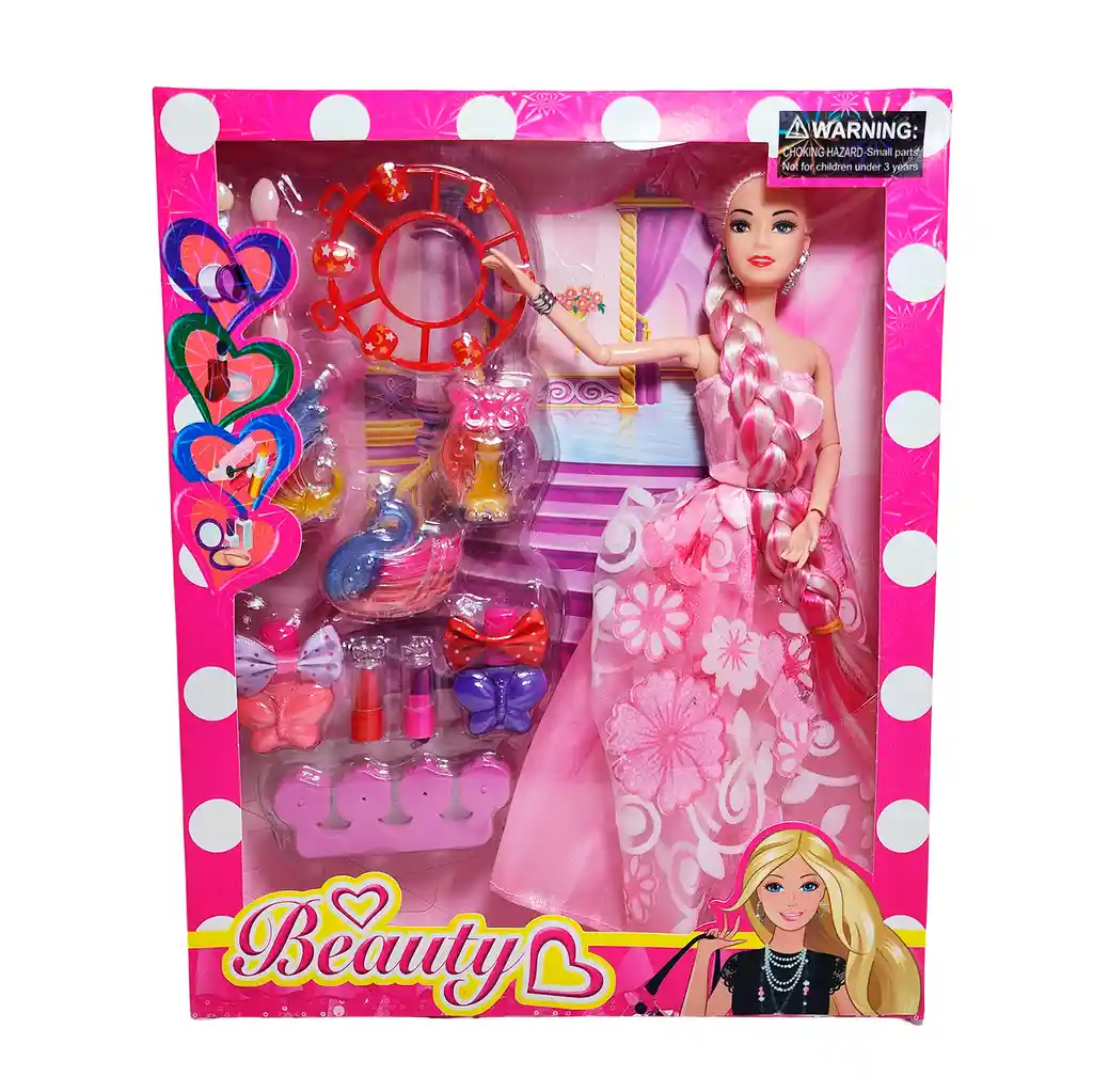 Hermosa muñeca con un elegante vestido largo en tonos morados y detalles florales, ideal para el juego creativo de las niñas; incluye accesorios de belleza como peines, pinzas, moños, esmaltes y un set de decoración que permite crear peinados únicos y divertidos, fomentando la imaginación y el juego de roles en un ambiente lleno de estilo y fantasía. Ficha Técnica: Dimensiones de la muñeca : 30 cm x 6 cm Material : Plástico ABS no tóxico, inodoro e inofensivo Edad Recomendada : +3 Años Referencia: B369-18 Certificado de conformidad: CS-LCO-13233-2021S2/432 Términos de garantía: Para defectos de fábrica o retractos: Por favor revise el producto apenas lo reciba y antes de usarlo. No aplican ley de retracto o defectos de fábrica luego de usar el producto. Se manejan máximo 5 días para reportar defectos de fábrica (por ejemplo, producto funciona mal, piezas faltantes, rotas, etc). Para hacer efectiva la devolución el producto debe devolverse con el empaque original, el cual debe estar en buen estado, incluir todos los documentos y las partes completas y sin daños.