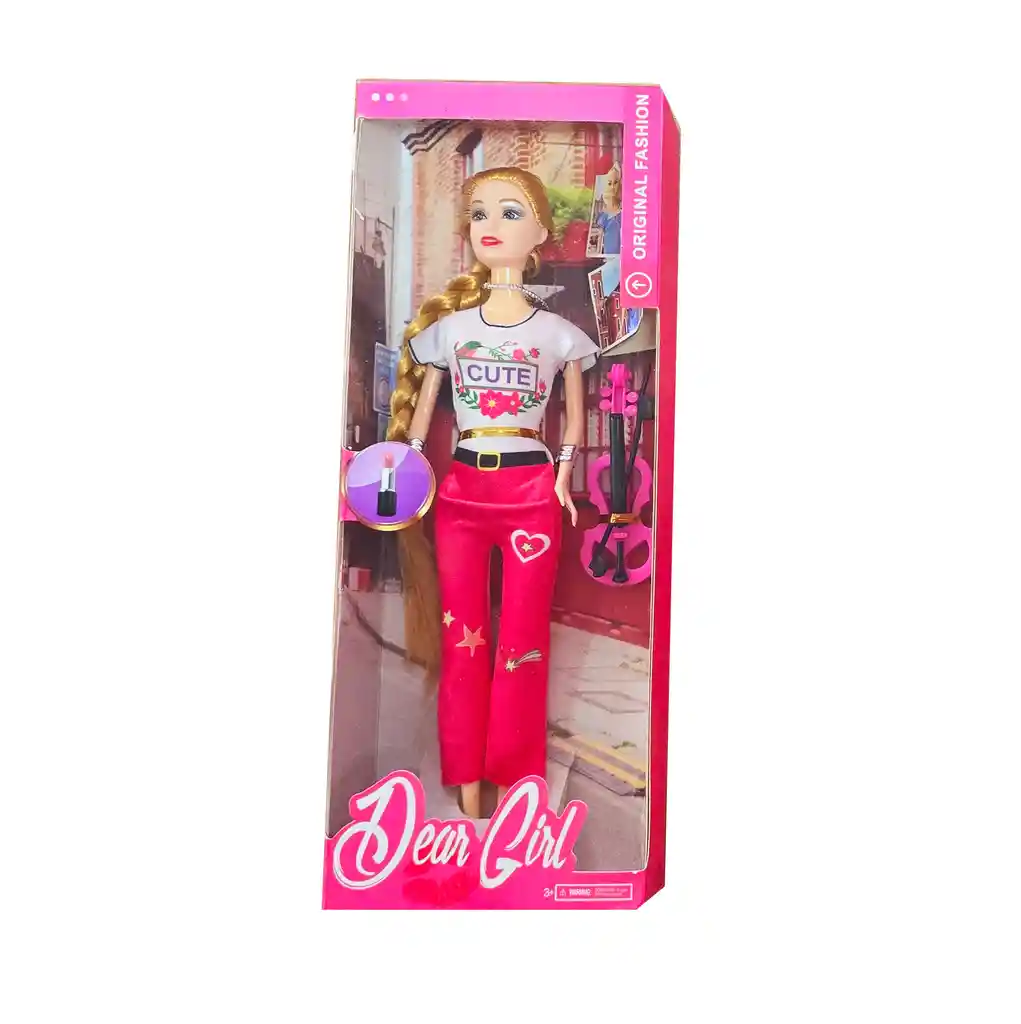 Esta muñeca, vestida de forma casual, viene acompañada de un elegante violín, inspirando a las niñas a crear historias llenas de música, creatividad y estilo mientras disfrutan de horas de juego imaginativo. Ficha Técnica: Dimensiones Muñeca: 29 cm x 9 cm Dimensiones del empaque : 32 cm x 12 cm x 4 cm Material: Plástico ABS Edad recomendada: + 3 años Referencia: 202A Certificado de conformidad: CS-LCO-13233-2021S2/432 ** _Para defectos de fábrica o retractos: \_Por favor revise el producto apenas lo reciba y antes de usarlo. No aplican ley de retracto o defectos de fábrica luego de usar el producto. Se manejan máximo 5 días para reportar defectos de fábrica (por ejemplo, producto funciona mal, piezas faltantes, rotas, etc). Para hacer efectiva la devolución el producto debe devolverse con el empaque original, el cual debe estar en buen estado, incluir todos los documentos y las partes completas y sin daños.