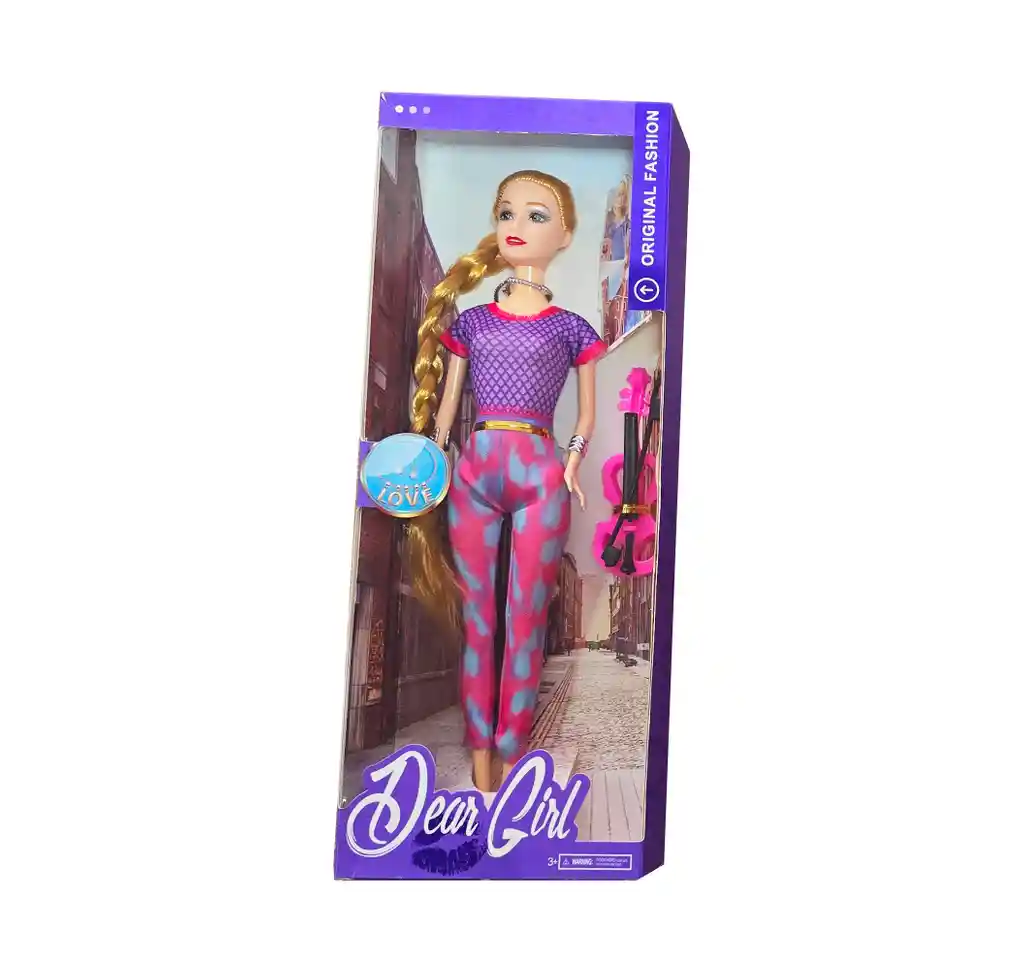 Esta muñeca, vestida de forma casual, viene acompañada de un elegante violín, inspirando a las niñas a crear historias llenas de música, creatividad y estilo mientras disfrutan de horas de juego imaginativo. Ficha Técnica: Dimensiones Muñeca: 29 cm x 9 cm Dimensiones del empaque : 32 cm x 12 cm x 4 cm Material: Plástico ABS Edad recomendada: + 3 años Referencia: 202A Certificado de conformidad: CS-LCO-13233-2021S2/432 ** _Para defectos de fábrica o retractos: \_Por favor revise el producto apenas lo reciba y antes de usarlo. No aplican ley de retracto o defectos de fábrica luego de usar el producto. Se manejan máximo 5 días para reportar defectos de fábrica (por ejemplo, producto funciona mal, piezas faltantes, rotas, etc). Para hacer efectiva la devolución el producto debe devolverse con el empaque original, el cual debe estar en buen estado, incluir todos los documentos y las partes completas y sin daños.