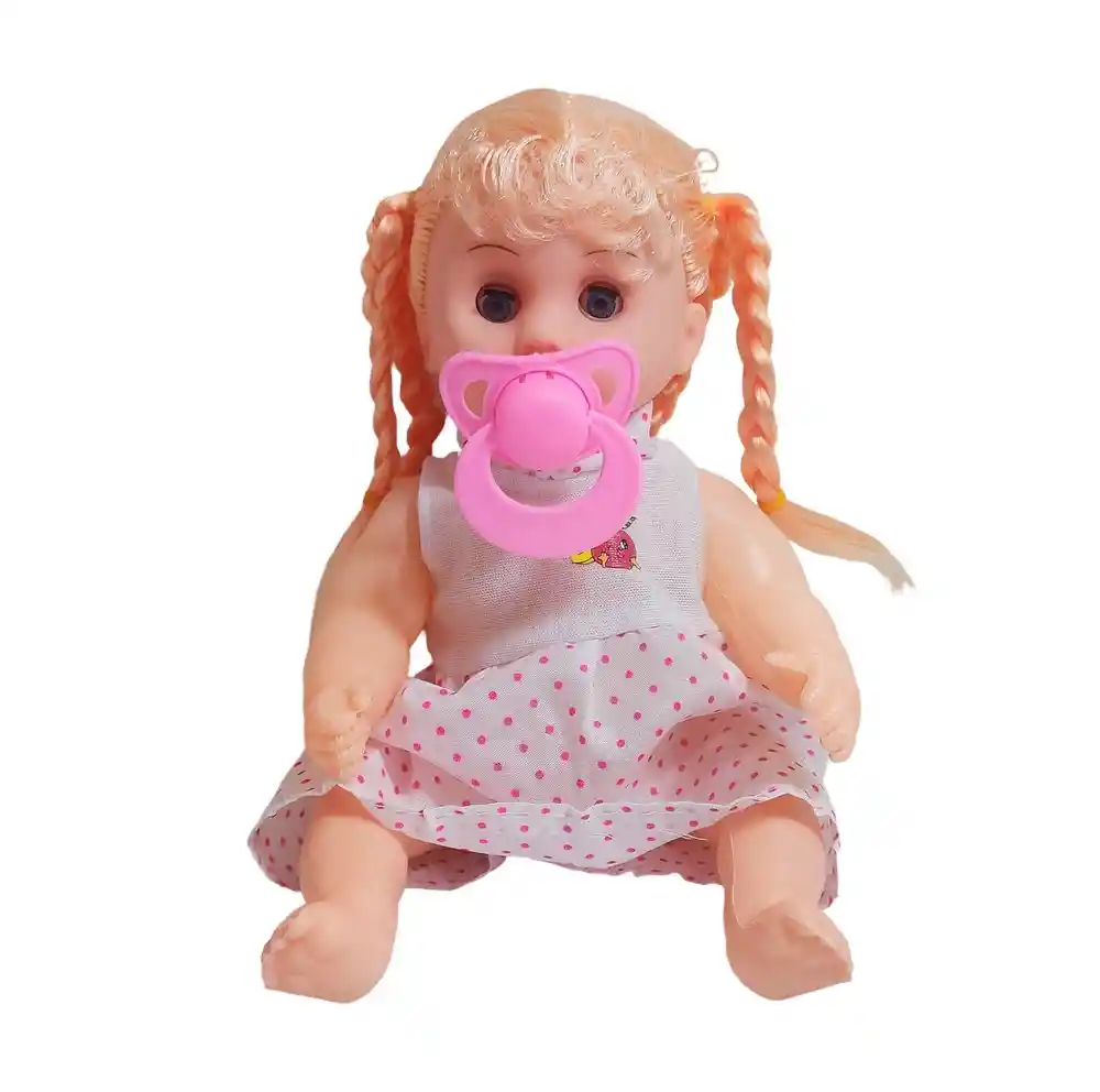 Muñeca bebé con chupón ideal para juegos de cuidado y ternura. Tiene el cabello con trenzas, un adorable vestido con detalles y una blusa Su chupete rosado completa el estilo dulce y encantador que invita a imaginar momentos de cariño y maternidad. Incluye una práctica mochila transparente con cierre rosado para guardarla y transportarla fácilmente. Ficha Técnica: Materiales : Plástico ABS Dimensiones: 18 cm x 13 cm x 5 cm Edad recomendada : + 3 años en adelante Material suave, cómodo, seguro, no tóxico Certificado de conformidad: SL-CS-210044 Referencia: JM-1249 23A1207 Términos de garantía: Para defectos de fábrica o retractos: Por favor revise el producto apenas lo reciba y antes de usarlo. No aplican ley de retracto o defectos de fábrica luego de usar el producto. Se manejan máximo 5 días para reportar defectos de fábrica (por ejemplo, producto funciona mal, piezas faltantes, rotas, etc). Para hacer efectiva la devolución el producto debe devolverse con el empaque original, el cual debe estar en buen estado, incluir todos los documentos y las partes completas y sin daños.