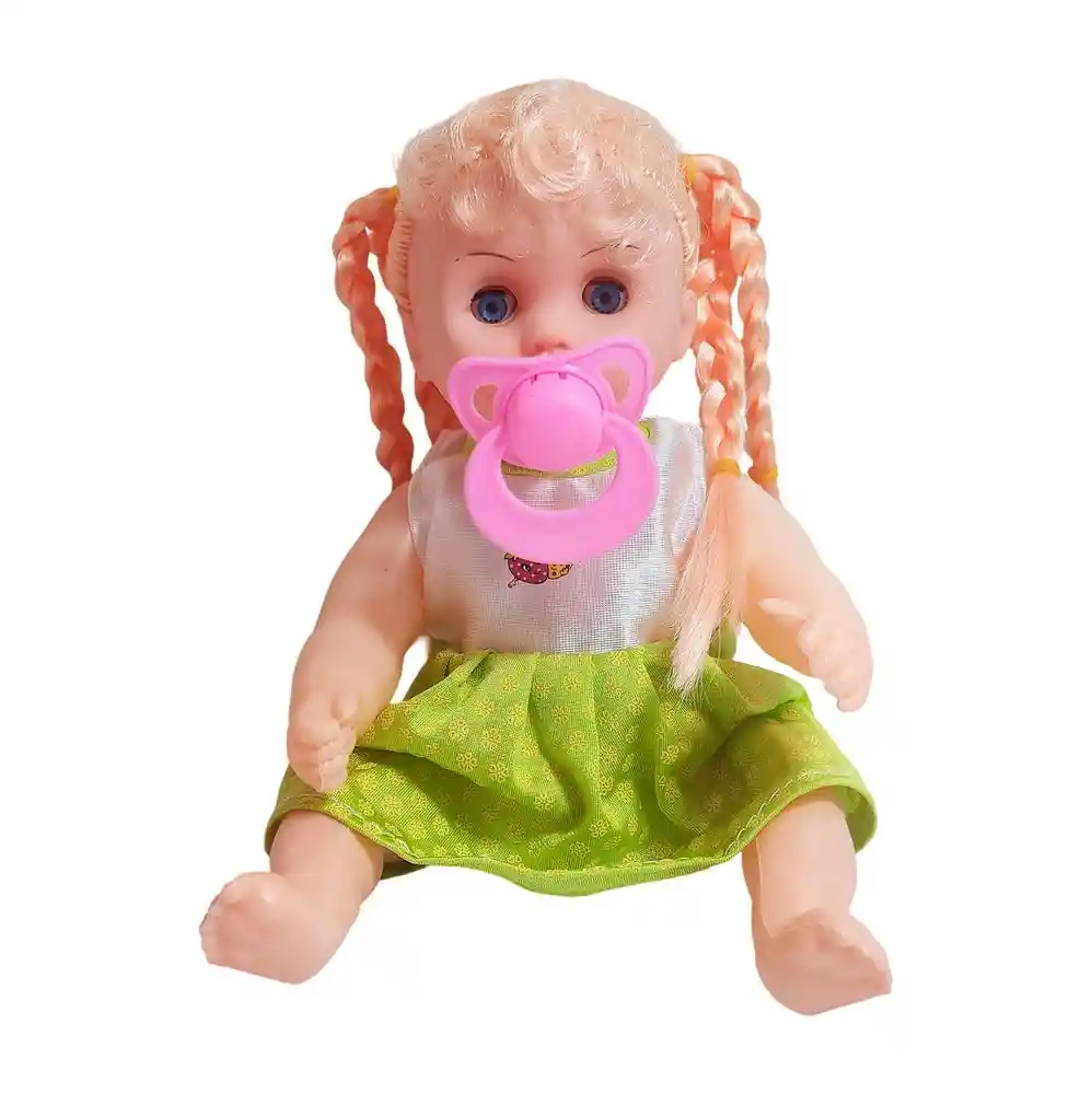 Muñeca bebé con chupón ideal para juegos de cuidado y ternura. Tiene el cabello con trenzas, un adorable vestido con detalles y una blusa Su chupete rosado completa el estilo dulce y encantador que invita a imaginar momentos de cariño y maternidad. Incluye una práctica mochila transparente con cierre rosado para guardarla y transportarla fácilmente. Ficha Técnica: Materiales : Plástico ABS Dimensiones: 18 cm x 13 cm x 5 cm Edad recomendada : + 3 años en adelante Material suave, cómodo, seguro, no tóxico Certificado de conformidad: SL-CS-210044 Referencia: JM-1249 23A1207 Términos de garantía: Para defectos de fábrica o retractos: Por favor revise el producto apenas lo reciba y antes de usarlo. No aplican ley de retracto o defectos de fábrica luego de usar el producto. Se manejan máximo 5 días para reportar defectos de fábrica (por ejemplo, producto funciona mal, piezas faltantes, rotas, etc). Para hacer efectiva la devolución el producto debe devolverse con el empaque original, el cual debe estar en buen estado, incluir todos los documentos y las partes completas y sin daños.