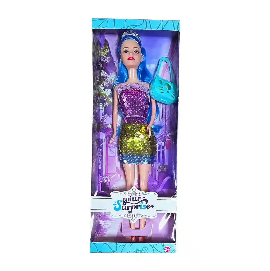 Esta deslumbrante muñeca luce un vestido elaborado con escamas o lentejuelas de colores, que brilla con cada movimiento, capturando la magia y el estilo en un solo look. En su brazo lleva un elegante bolso de juguete, que añade un toque final de sofisticación, haciendo de este set la opción perfecta para inspirar la creatividad y el juego imaginativo en los niños. /// Nota: Los colores de los vestidos de las muñecas pueden variar ligeramente /// Ficha Técnica: Dimensiones Muñeca: 30 cm x 08 cm Dimensiones del empaque : 32 cm x 13 cm x 05 cm Material: Plástico ABS Edad recomendada: + 3 años Referencia: MU1086 Certificado de conformidad: CS-LCO-13233-2021S2/432 ** _Para defectos de fábrica o retractos: \_Por favor revise el producto apenas lo reciba y antes de usarlo. No aplican ley de retracto o defectos de fábrica luego de usar el producto. Se manejan máximo 5 días para reportar defectos de fábrica (por ejemplo, producto funciona mal, piezas faltantes, rotas, etc). Para hacer efectiva la devolución el producto debe devolverse con el empaque original, el cual debe estar en buen estado, incluir todos los documentos y las partes completas y sin daños.