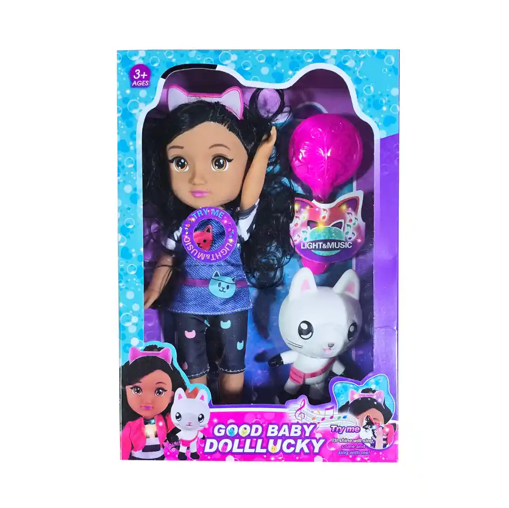 Esta encantadora muñeca viene con su adorable mascota, formando el dúo perfecto para momentos de juego y diversión. Con su hermoso cabello, listo para ser peinado y arreglado con el peine incluido, esta muñeca permite a los niños explorar su creatividad y estilo. Su expresión amigable y detalles cuidadosamente elaborados la hacen una compañera ideal para aventuras llenas de imaginación. /// La muñeca incluye baterías /// Ficha Técnica: Dimensiones: 26 cm x 8 cm Material: Plástico ABS Edad recomendada: + 3 años Certificado de conformidad: SL-CS-210044 Referencia: C1182 ** _Para defectos de fábrica o retractos: \_Por favor revise el producto apenas lo reciba y antes de usarlo. No aplican ley de retracto o defectos de fábrica luego de usar el producto. Se manejan máximo 5 días para reportar defectos de fábrica (por ejemplo, producto funciona mal, piezas faltantes, rotas, etc). Para hacer efectiva la devolución el producto debe devolverse con el empaque original, el cual debe estar en buen estado, incluir todos los documentos y las partes completas y sin daños.