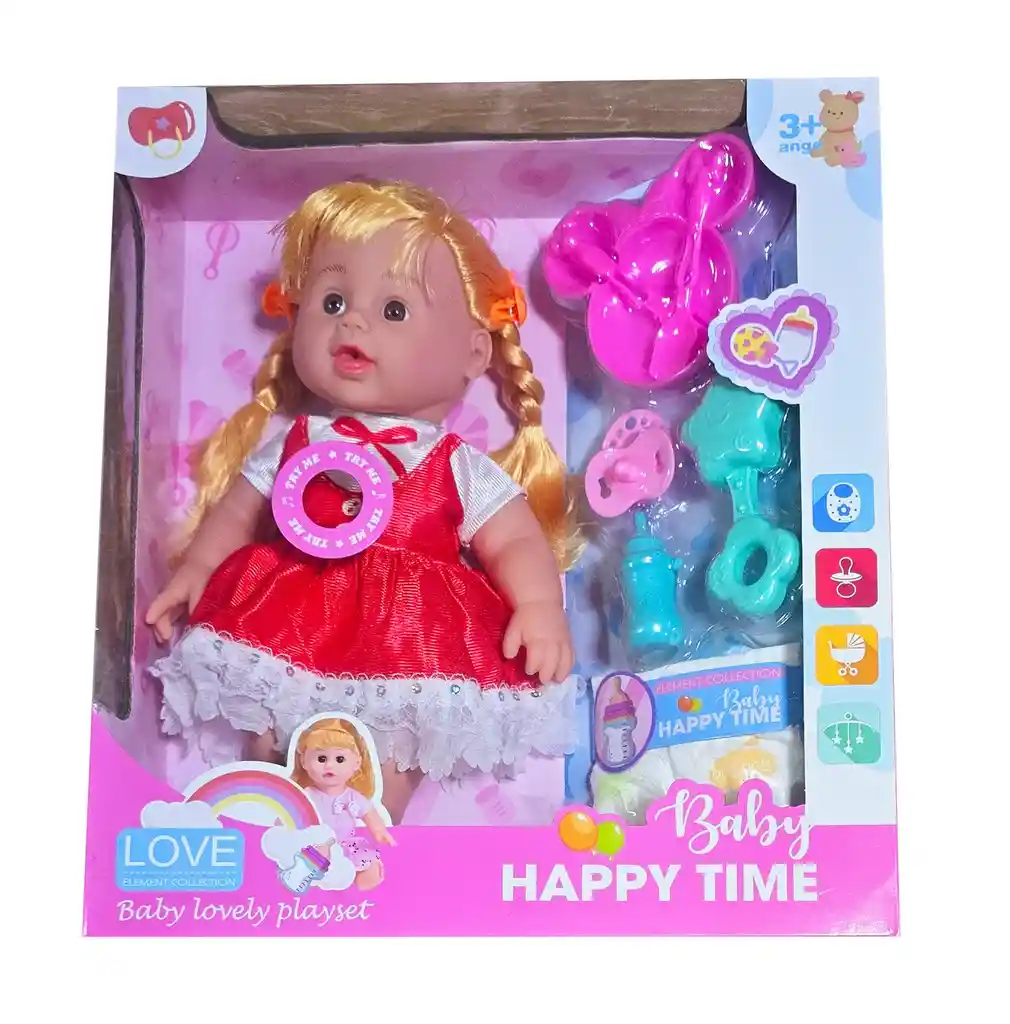 Esta muñeca, con un hermoso vestido lleno de detalles, viene acompañada de un pañal y utensilios para alimentarla, ofreciendo a los niños una experiencia de juego divertida y realista mientras cuidan de su nueva amiga. /// Nota: Los colores de los vestidos de las muñecas pueden variar ligeramente /// Ficha Técnica: Dimensiones Muñeca: 30 cm x 17 cm Dimensiones del empaque : 35 cm x 32 cm x 12 cm Material: Plástico ABS Edad recomendada: + 3 años Referencia: 657 MODEL Q88B-1 Certificado de conformidad: CS-LCO-13233-2021S2/432 ** _Para defectos de fábrica o retractos: \_Por favor revise el producto apenas lo reciba y antes de usarlo. No aplican ley de retracto o defectos de fábrica luego de usar el producto. Se manejan máximo 5 días para reportar defectos de fábrica (por ejemplo, producto funciona mal, piezas faltantes, rotas, etc). Para hacer efectiva la devolución el producto debe devolverse con el empaque original, el cual debe estar en buen estado, incluir todos los documentos y las partes completas y sin daños.