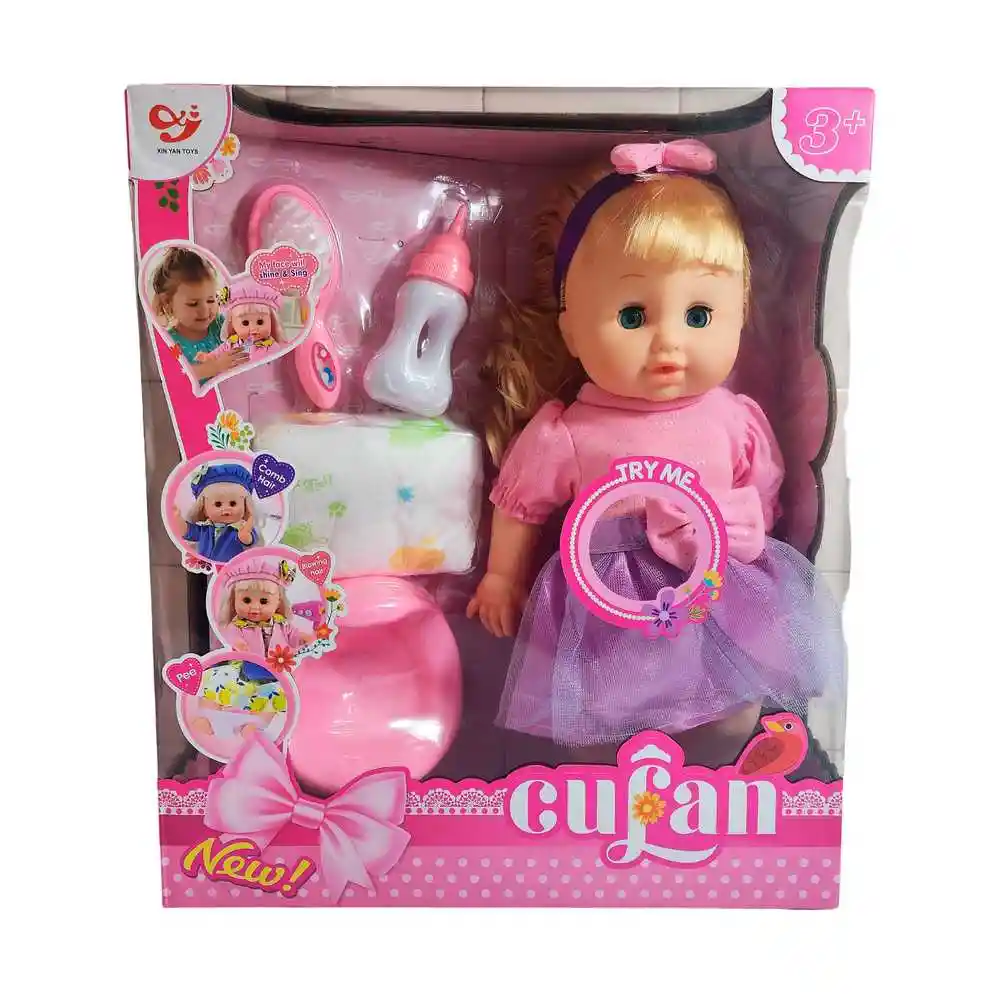 Encantadora muñeca bebé interactiva Cufan con vestido a juego, perfecta para que las niñas vivan momentos llenos de ternura y juego. Incluye accesorios como biberón, cepillo, pañal y plato, ideales para cuidar y alimentar a su muñeca como una verdadera mamá. Su diseño realista y materiales suaves la convierten en una compañera ideal para fomentar el cariño, la imaginación y el juego de roles. Recomendada para niñas mayores de 3 años. Ficha Técnica: Materiales : Plástico ABS Dimensiones: 30 cm x 15 cm Edad recomendada : + 3 años en adelante Certificado de conformidad: SL-CS-210044 Referencia: JM-1250 P9801 Términos de garantía: Para defectos de fábrica o retractos: Por favor revise el producto apenas lo reciba y antes de usarlo. No aplican ley de retracto o defectos de fábrica luego de usar el producto. Se manejan máximo 5 días para reportar defectos de fábrica (por ejemplo, producto funciona mal, piezas faltantes, rotas, etc). Para hacer efectiva la devolución el producto debe devolverse con el empaque original, el cual debe estar en buen estado, incluir todos los documentos y las partes completas y sin daños.Encantadora muñeca bebé interactiva Cufan con vestido a juego, perfecta para que las niñas vivan momentos llenos de ternura y juego. Incluye accesorios como biberón, cepillo, pañal y plato, ideales para cuidar y alimentar a su muñeca como una verdadera mamá. Su diseño realista y materiales suaves la convierten en una compañera ideal para fomentar el cariño, la imaginación y el juego de roles. Recomendada para niñas mayores de 3 años. Ficha Técnica: Materiales : Plástico ABS Dimensiones: 30 cm x 15 cm Edad recomendada : + 3 años en adelante Certificado de conformidad: SL-CS-210044 Referencia: JM-1250 P9801 Términos de garantía: Para defectos de fábrica o retractos: Por favor revise el producto apenas lo reciba y antes de usarlo. No aplican ley de retracto o defectos de fábrica luego de usar el producto. Se manejan máximo 5 días para reportar defectos de fábrica (por ejemplo, producto funciona mal, piezas faltantes, rotas, etc). Para hacer efectiva la devolución el producto debe devolverse con el empaque original, el cual debe estar en buen estado, incluir todos los documentos y las partes completas y sin daños.