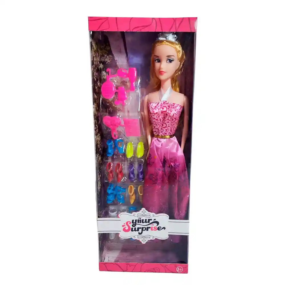 Muñeca Vestido Princesa Con Corona + Zapatos Y Accesorios