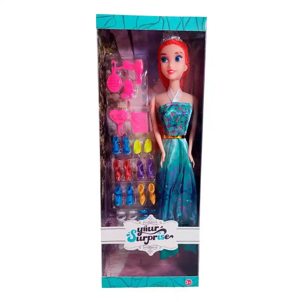 Muñeca Vestido Princesa Con Corona + Zapatos Y Accesorios