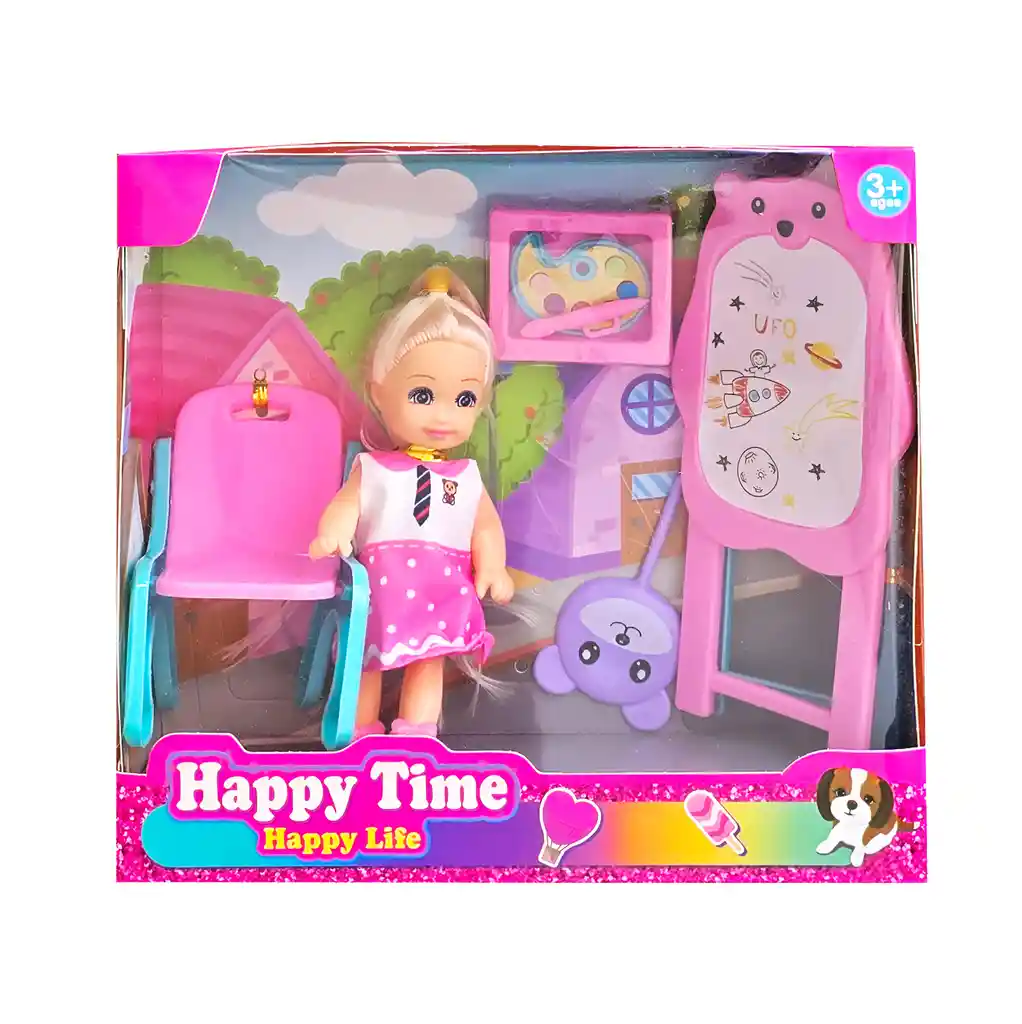 Esta encantadora muñeca viene acompañada de un mini tablero de juguete y una silla, creando el escenario perfecto para que los niños exploren su imaginación. Ya sea que la muñeca esté tomando una lección, resolviendo problemas o simplemente disfrutando de un momento creativo, este conjunto ofrece una experiencia completa de juego interactivo. Con su diseño detallado y realista, fomenta la creatividad y promueve el juego de roles, brindando horas de entretenimiento mientras los niños inventan historias y situaciones para su muñeca en su propio espacio de aprendizaje. Ficha Técnica: Dimensiones Muñeca: 12 cm x 5 cm Dimensiones del empaque : 19 cm x 17 cm x 5 cm Material: Plástico ABS Edad recomendada: + 3 años Referencia: C1247 Certificado de conformidad: E5-0359-2021 ** _Para defectos de fábrica o retractos: \_Por favor revise el producto apenas lo reciba y antes de usarlo. No aplican ley de retracto o defectos de fábrica luego de usar el producto. Se manejan máximo 5 días para reportar defectos de fábrica (por ejemplo, producto funciona mal, piezas faltantes, rotas, etc). Para hacer efectiva la devolución el producto debe devolverse con el empaque original, el cual debe estar en buen estado, incluir todos los documentos y las partes completas y sin daños.