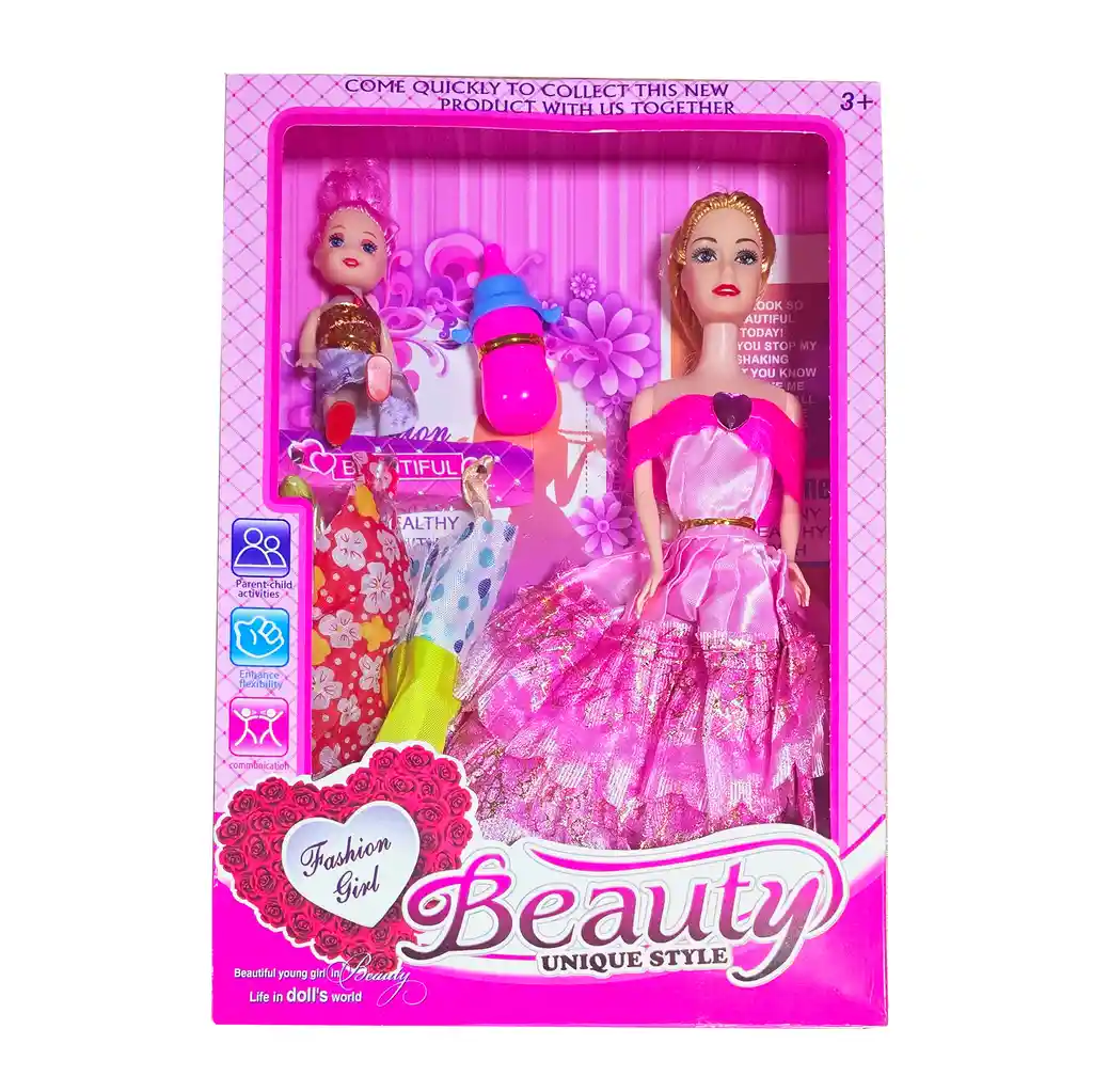 Esta encantadora muñeca viene acompañada de tres vestidos adicionales, permitiendo cambiar su estilo para cualquier ocasión. El set incluye también una pequeña muñeca y un tetero, lo que añade un toque de ternura y cuidado al juego. Perfecto para crear historias llenas de moda y amor, este set invita a los niños a disfrutar de horas de diversión creativa. /// Nota: Los colores de los vestidos de las muñecas pueden variar ligeramente /// Ficha Técnica: Dimensiones Muñeca: 28 cm x 08 cm Dimensiones del empaque : 32 cm x 22 cm x 5 cm Material: Plástico ABS Edad recomendada: + 3 años Referencia: 1109A Certificado de conformidad: CS-LCO-13233-2021S2/432 ** _Para defectos de fábrica o retractos: \_Por favor revise el producto apenas lo reciba y antes de usarlo. No aplican ley de retracto o defectos de fábrica luego de usar el producto. Se manejan máximo 5 días para reportar defectos de fábrica (por ejemplo, producto funciona mal, piezas faltantes, rotas, etc). Para hacer efectiva la devolución el producto debe devolverse con el empaque original, el cual debe estar en buen estado, incluir todos los documentos y las partes completas y sin daños.