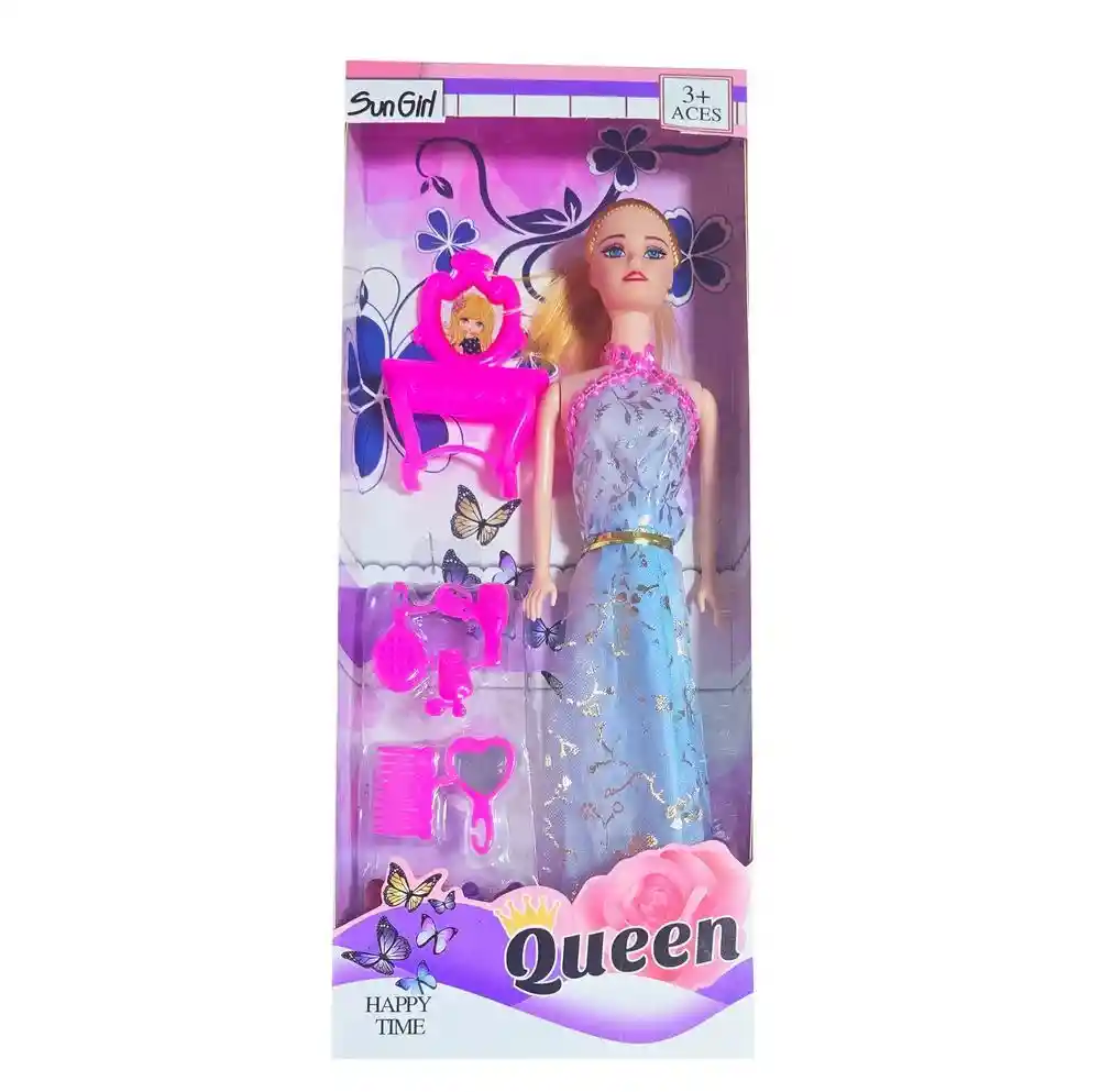 Esta muñeca luce un hermoso vestido que resalta su estilo elegante, acompañada de un tocador de juguete con varios accesorios encantadores y múltiples pares de zapatos para cambiar de look en cualquier momento. Con este conjunto, las niñas pueden disfrutar creando diferentes combinaciones, peinados y estilos, fomentando su imaginación y creatividad mientras juegan a ser estilistas y diseñadoras en su propio mundo de moda y fantasía. /// Nota: Algunos colores del vestido y el cabello de la muñeca pueden variar ligeramente /// Ficha Técnica: Dimensiones de la muñeca: 29 cm x 9 cm Dimensiones del empaque: 32 cm x 13 cm x 5 cm Material: Plástico ABS no toxico Edad recomendada + 3 Años Certificado de conformidad: CS-LCO-13233-2021S2/432 Referencia: 716B ** _Para defectos de fábrica o retractos: \_Por favor revise el producto apenas lo reciba y antes de usarlo. No aplican ley de retracto o defectos de fábrica luego de usar el producto. Se manejan máximo 5 días para reportar defectos de fábrica (por ejemplo, producto funciona mal, piezas faltantes, rotas, etc). Para hacer efectiva la devolución el producto debe devolverse con el empaque original, el cual debe estar en buen estado, incluir todos los documentos y las partes completas y sin daños.