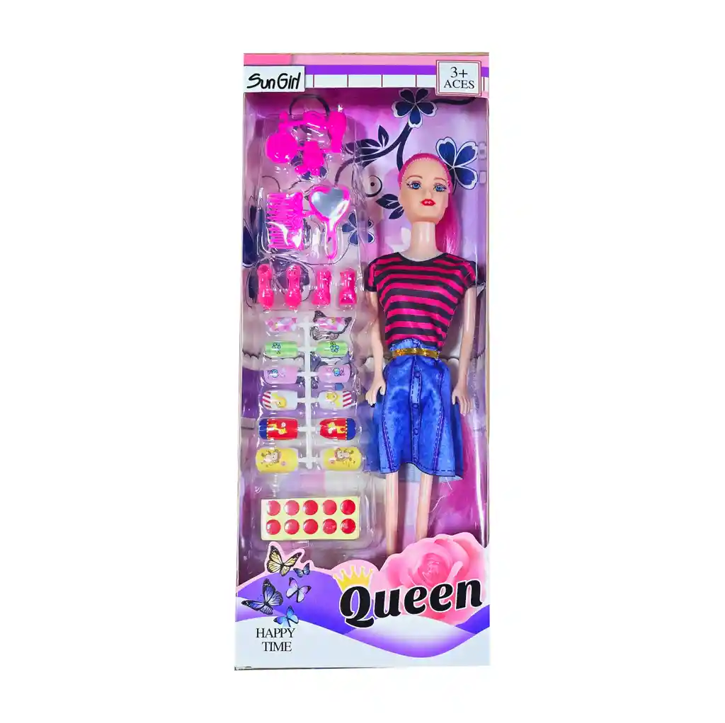 Esta muñeca viene con accesorios especiales, como un espejo y uñas postizas de juguete, ofreciendo a las niñas una experiencia de juego creativa y divertida donde pueden explorar su estilo personal, imaginar momentos de belleza y desarrollar su imaginación con actividades llenas de glamour. /// El color del cabello de la muñeca y el vestido puede variar ligeramente /// Ficha Técnica: Dimensiones Muñeca: 29 cm x 9 cm Dimensiones del empaque : 32 cm x 12 cm x 4 cm Material: Plástico ABS Edad recomendada: + 3 años Referencia: H210-1 Certificado de conformidad: CS-LCO-13233-2021S2/432 ** _Para defectos de fábrica o retractos: \_Por favor revise el producto apenas lo reciba y antes de usarlo. No aplican ley de retracto o defectos de fábrica luego de usar el producto. Se manejan máximo 5 días para reportar defectos de fábrica (por ejemplo, producto funciona mal, piezas faltantes, rotas, etc). Para hacer efectiva la devolución el producto debe devolverse con el empaque original, el cual debe estar en buen estado, incluir todos los documentos y las partes completas y sin daños.