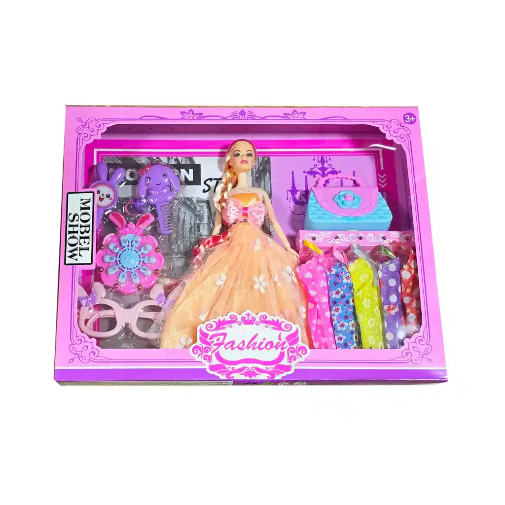 Esta muñeca viene con una colección de vestidos variados y coloridos, perfectos para crear diferentes looks en cada ocasión. Incluye una selección de accesorios únicos como unas modernas gafas, peinillas con diseño de conejo, y un bolso encantador, brindando múltiples opciones para jugar y dejar volar la imaginación en cada momento. /// Nota: Los colores de los vestidos de las muñecas pueden variar ligeramente /// Ficha Técnica: Dimensiones Muñeca: 29 cm x 9 cm Dimensiones del empaque : 42 cm x 33 cm x 5 cm Material: Plástico ABS Edad recomendada: + 3 años Referencia: 628A3 Certificado de conformidad: CS-LCO-13233-2021S2/432 ** _Para defectos de fábrica o retractos: \_Por favor revise el producto apenas lo reciba y antes de usarlo. No aplican ley de retracto o defectos de fábrica luego de usar el producto. Se manejan máximo 5 días para reportar defectos de fábrica (por ejemplo, producto funciona mal, piezas faltantes, rotas, etc). Para hacer efectiva la devolución el producto debe devolverse con el empaque original, el cual debe estar en buen estado, incluir todos los documentos y las partes completas y sin daños.