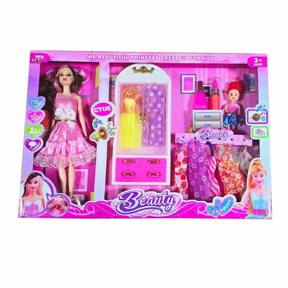 Esta muñeca, que viene acompañada de un elegante armario, es perfecta para las amantes de la moda. Dentro de la caja, podrás encontrar aproximadamente seis vestidos de diferentes colores, listos para combinarse con varios accesorios incluidos en el set. Además, la muñeca viene acompañada de una versión mini, ideal para compartir divertidos momentos y crear historias llenas de estilo y creatividad. /// Nota: Los colores de los vestidos de las muñecas pueden variar ligeramente /// Ficha Técnica: Dimensiones Muñeca: 28 cm x 9 cm Dimensiones del empaque : 48 cm x 33 cm x 7 cm Material: Plástico ABS Edad recomendada: + 3 años Referencia: 703K5 Certificado de conformidad: CS-LCO-13233-2021S2/432 ** _Para defectos de fábrica o retractos: \_Por favor revise el producto apenas lo reciba y antes de usarlo. No aplican ley de retracto o defectos de fábrica luego de usar el producto. Se manejan máximo 5 días para reportar defectos de fábrica (por ejemplo, producto funciona mal, piezas faltantes, rotas, etc). Para hacer efectiva la devolución el producto debe devolverse con el empaque original, el cual debe estar en buen estado, incluir todos los documentos y las partes completas y sin daños.