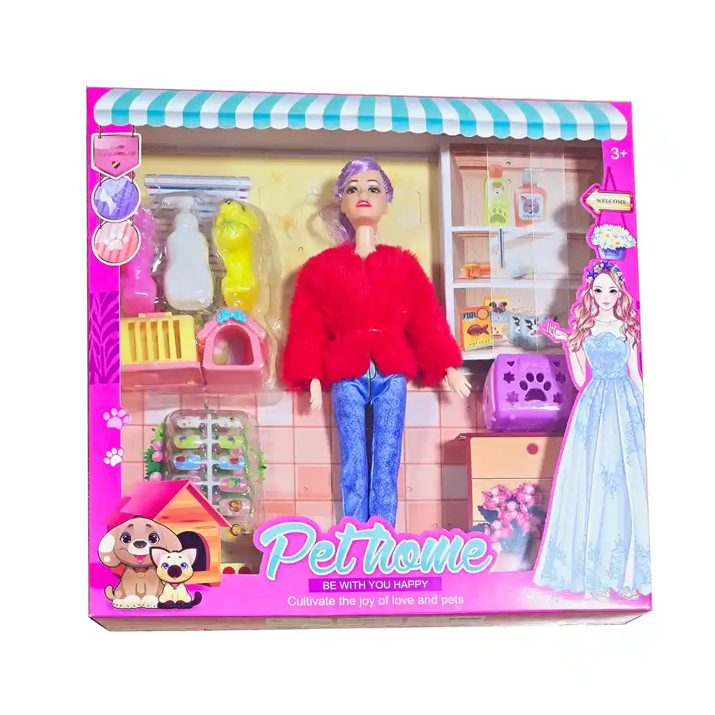 Esta encantadora muñeca, vestida con un elegante abrigo y pantalón, viene acompañada de su adorable mascota, lista para compartir momentos especiales. El set incluye una jaula y una variedad de accesorios tanto para la muñeca como para su compañera peludo, permitiendo cuidar de su mascota y disfrutar juntas de un sinfín de aventuras llenas de estilo y ternura. /// Nota: Los colores de los vestidos de las muñecas pueden variar ligeramente /// Ficha Técnica: Dimensiones Muñeca: 29 cm x 9 cm Dimensiones del empaque : 34 cm x 33 cm x 5 cm Material: Plástico ABS Edad recomendada: + 3 años Referencia: 2999 Certificado de conformidad: CS-LCO-13233-2021S2/432 ** _Para defectos de fábrica o retractos: \_Por favor revise el producto apenas lo reciba y antes de usarlo. No aplican ley de retracto o defectos de fábrica luego de usar el producto. Se manejan máximo 5 días para reportar defectos de fábrica (por ejemplo, producto funciona mal, piezas faltantes, rotas, etc). Para hacer efectiva la devolución el producto debe devolverse con el empaque original, el cual debe estar en buen estado, incluir todos los documentos y las partes completas y sin daños.