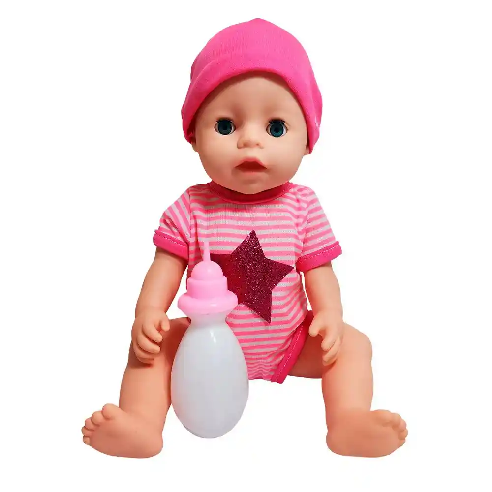 La muñeca Baby Lovely Music es el regalo ideal para los niños que disfrutan cuidar y jugar con ternura. Con su adorable atuendo de rayas y gorro rosado, esta muñeca emite sonidos musicales que hacen el juego más interactivo y divertido. Incluye un biberón para recrear momentos de alimentación y fomentar la imaginación y el juego de roles. Fabricada con materiales seguros y suaves al tacto, es perfecta para niñas y niños mayores de 3 años. Ficha Técnica: Dimensiones : 33 cm x 16 cm Material: Plástico ABS Edad recomendada: + 3 años Referencia: MU1107 5589 Certificado de conformidad: E5-0359-2021 ** _Para defectos de fábrica o retractos: \_Por favor revise el producto apenas lo reciba y antes de usarlo. No aplican ley de retracto o defectos de fábrica luego de usar el producto. Se manejan máximo 5 días para reportar defectos de fábrica (por ejemplo, producto funciona mal, piezas faltantes, rotas, etc). Para hacer efectiva la devolución el producto debe devolverse con el empaque original, el cual debe estar en buen estado, incluir todos los documentos y las partes completas y sin daños.
