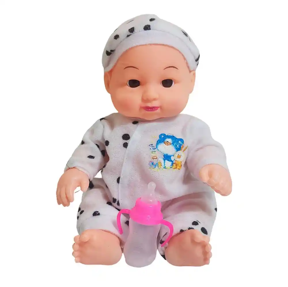 Tierna muñeca bebé con tetero , perfecta para juegos de cuidado y crianza. Viste un pijama con estampado de personaje infantil y un gorrito a juego que resalta su aspecto adorable, para alimentar a la muñeca y fomentar el juego imaginativo. Viene empacada en una práctica mochila transparente con cierre, ideal para guardarla o llevarla a cualquier lugar de forma cómoda y segura. Ficha Técnica: Materiales : Plástico ABS Dimensiones: 18 cm x 13 cm x 5 cm Edad recomendada : + 3 años en adelante Material suave, cómodo, seguro, no tóxico Certificado de conformidad: SL-CS-210044 Referencia: JM-1229 23A1008 Términos de garantía: Para defectos de fábrica o retractos: Por favor revise el producto apenas lo reciba y antes de usarlo. No aplican ley de retracto o defectos de fábrica luego de usar el producto. Se manejan máximo 5 días para reportar defectos de fábrica (por ejemplo, producto funciona mal, piezas faltantes, rotas, etc). Para hacer efectiva la devolución el producto debe devolverse con el empaque original, el cual debe estar en buen estado, incluir todos los documentos y las partes completas y sin daños.