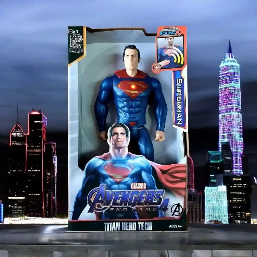 Súperman es un muñeco articulado diferenciando las distintas texturas y relieves del cuerpo y accesorios de los personajes. Tiene luces y sonido que te ayudara estimulara la creatividad del niño. Con ellas, vas a poder crear historias en la que los personajes puedan movilizarse y cobrar vida. * Está construida de plástico. * Es articulada. * Figura coleccionable. * Luces y sonido